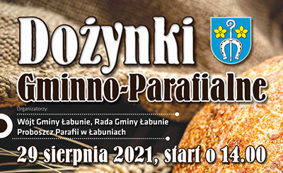 Organizatorzy: Wójt Gminy Łabunie, Rada Gminy Łabunie i Proboszcz Parafii Łabunie zapraszają w niedzielę, 29 sierpnia 2021 r. na Dożynki Gminno-Parafialne.