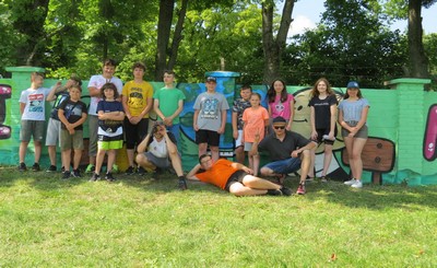 Pszczółka maja, Bolek i Lolek, Reksio - takich bajkowych bohaterów zmalowali na murach przy placu zabaw w Łabuniach uczestnicy wakacyjnych warsztatów graffiti.
