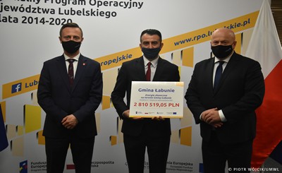 Wójt Gminy Łabunie - Mariusz Kukiełka podpisał w Urzędzie Marszałkowskim w Lublinie umowę na dofinansowanie unijne związane z odnawialnymi źródłami energii.