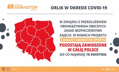 Przypominamy, że z uwagi na wprowadzone obostrzenia związane z pandemią koronawirusa, do 18 kwietnia nie można korzystać z boiska Orlik w Łabuniach.