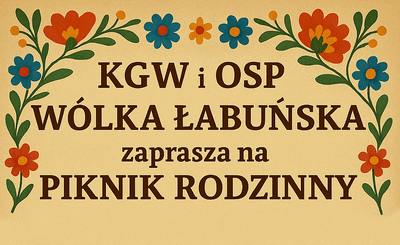 Koło Gospodyń Wiejskich i Ochotnicza Straż Pożarna w Wólce Łabuńskiej zapraszają w niedzielę, 29 czerwca 2025 r. na piknik rodzinny.