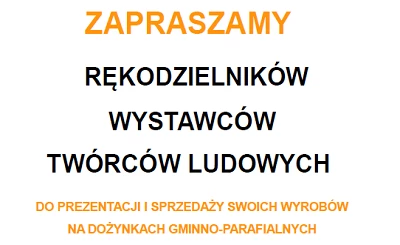 Jesteś wystawcą, twórcą ludowym, rękodzielnikiem? Zapraszamy do prezentacji swoich produktów/wyrobów na Dożynkach Gminno-Parafialnych w Łabuniach.
