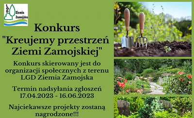 LGD Ziemia Zamojska zaprasza stowarzyszenia, Koła Gospodyń Wiejskich i Ochotnicze Straże Pożarne z gminy Łabunie do udziału w konkursie „Kreujemy przestrzeń Ziemi Zamojskiej”.