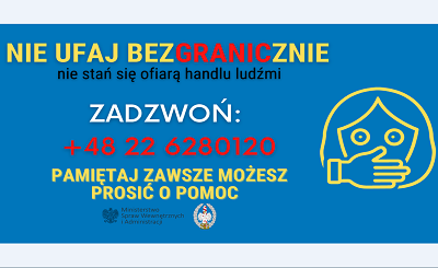 W związku z wojną na Ukrainie i masowym napływem ludzi zza wschodniej granicy, zwłaszcza młodych osób i kobiet z dziećmi przedstawiamy komunikat dotyczący przeciwdziałania zjawisku handlu ludźmi.