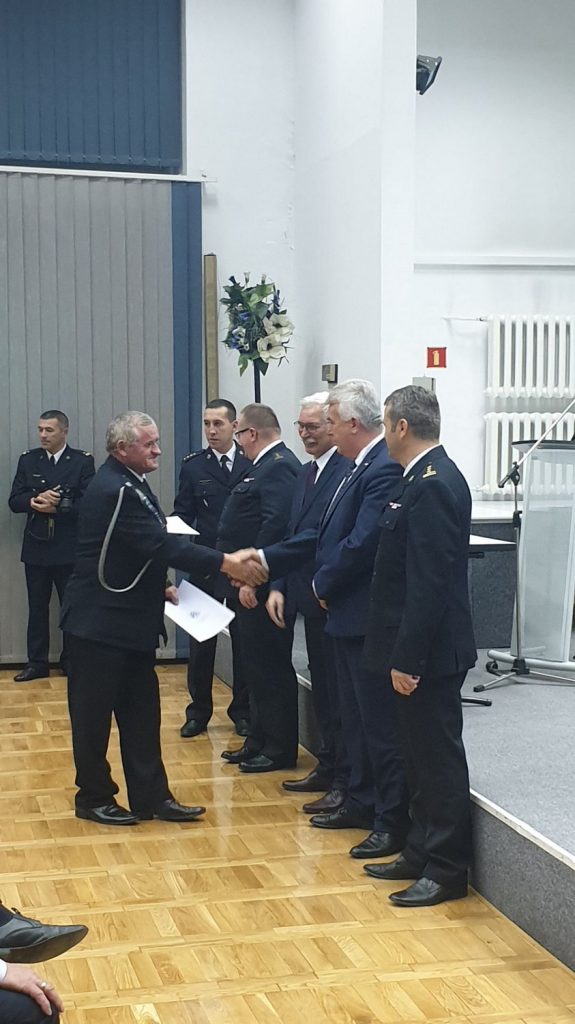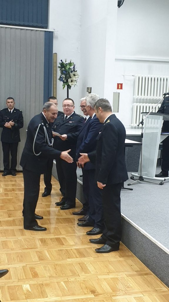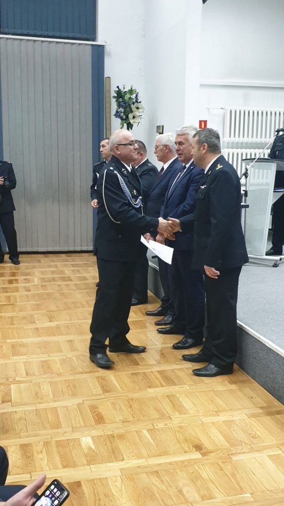 Komendant Miejski Państwowej Straży Pożarnej w Zamościu st. bryg. Jacek Sobczyński powitał zaproszonych gości oraz odczytał list Prezesa Rady Ministrów Pana Mateusza Morawieckiego skierowany do Druhen i Druhów Ochotniczych Straży Pożarnych. W uroczystości udział wzięli m.in. Zastępca Lubelskiego Komendanta Wojewódzkiego Państwowej Straży Pożarnej w Lublinie st. bryg. Piotr Zmarz, Senator Jerzy Chruścikowski, Poseł Sławomir Zawiślak, Radny Sejmiku Województwa Lubelskiego Krzysztof Gałaszkiewicz, Starosta Zamojski Pan Stanisław Grześko, a w imieniu gminy Łabunie – Wójt Mariusz Kukiełka, Komendant Gminny OSP – Paweł Mróz oraz prezesi jednostek OSP.
