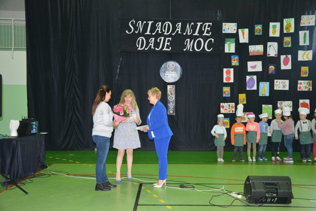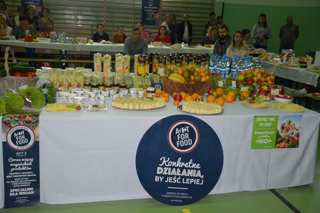 W piątek, 8 listopada uczniowie z każdej klasy zaprezentowali część artystyczną o tematyce związanej ze zdrowym żywieniem. Następnie z przygotowanych produktów przez rodziców oraz produktów „- bio” sponsorowanych przez Carrefour Polska w Zamościu wykonali bajecznie kolorowe kanapki i szaszłyki, dbając nie tylko o ich walory zdrowotne, ale także estetyczne. Punktem kulminacyjnym była wspólna degustacja kanapek. Śniadanie pozbawione cukierków, batonów i słodzonych napojów, za to bogate w warzywa i nabiał, zyskało uznanie u wszystkich.