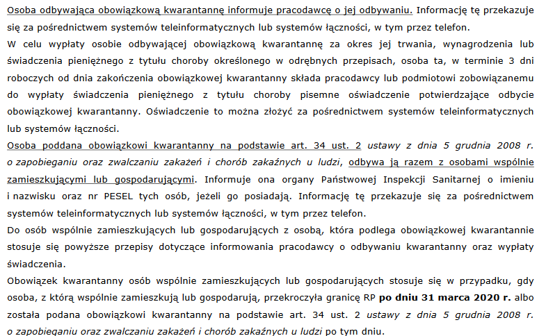 b) W przypadku kwarantanny nakładanej przez sanepid – o jej nałożeniu informuje, również telefonicznie, pracownik sanepidu. Podczas informacji o nałożeniu kwarantanny pracownik sanepidu informuje o dacie jej zakończenia.