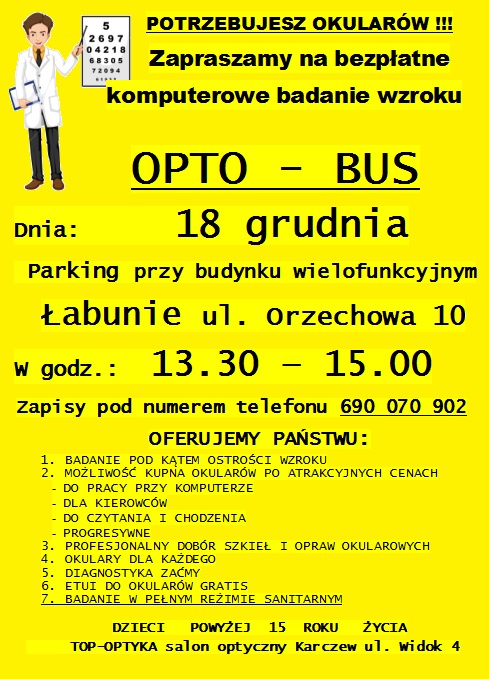 Mieszkańcy gminy Łabunie będą mogli skorzystać z bezpłatnych, komputerowych badań wzroku. Do Łabuń, 18 grudnia przyjedzie opto-bus.