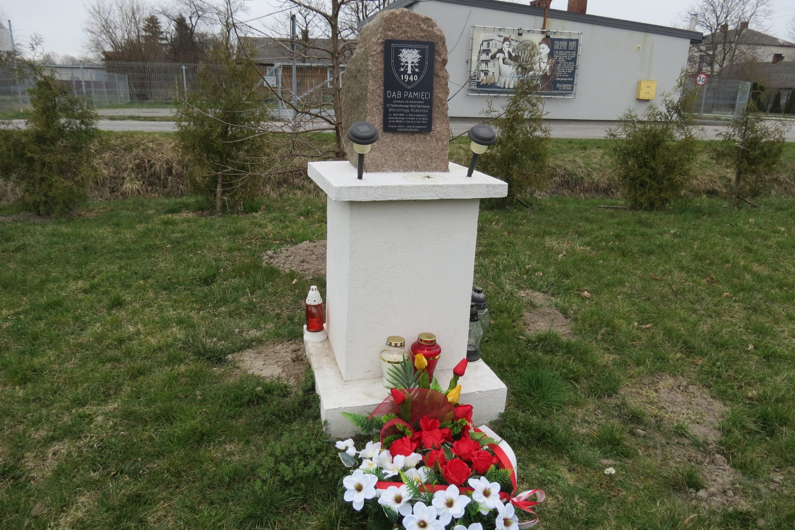 Dąb Pamięci przy Remizie Strażackiej w Wólce Łabuńskiej poświęcony st. post. Wincentemu Rozkresowi