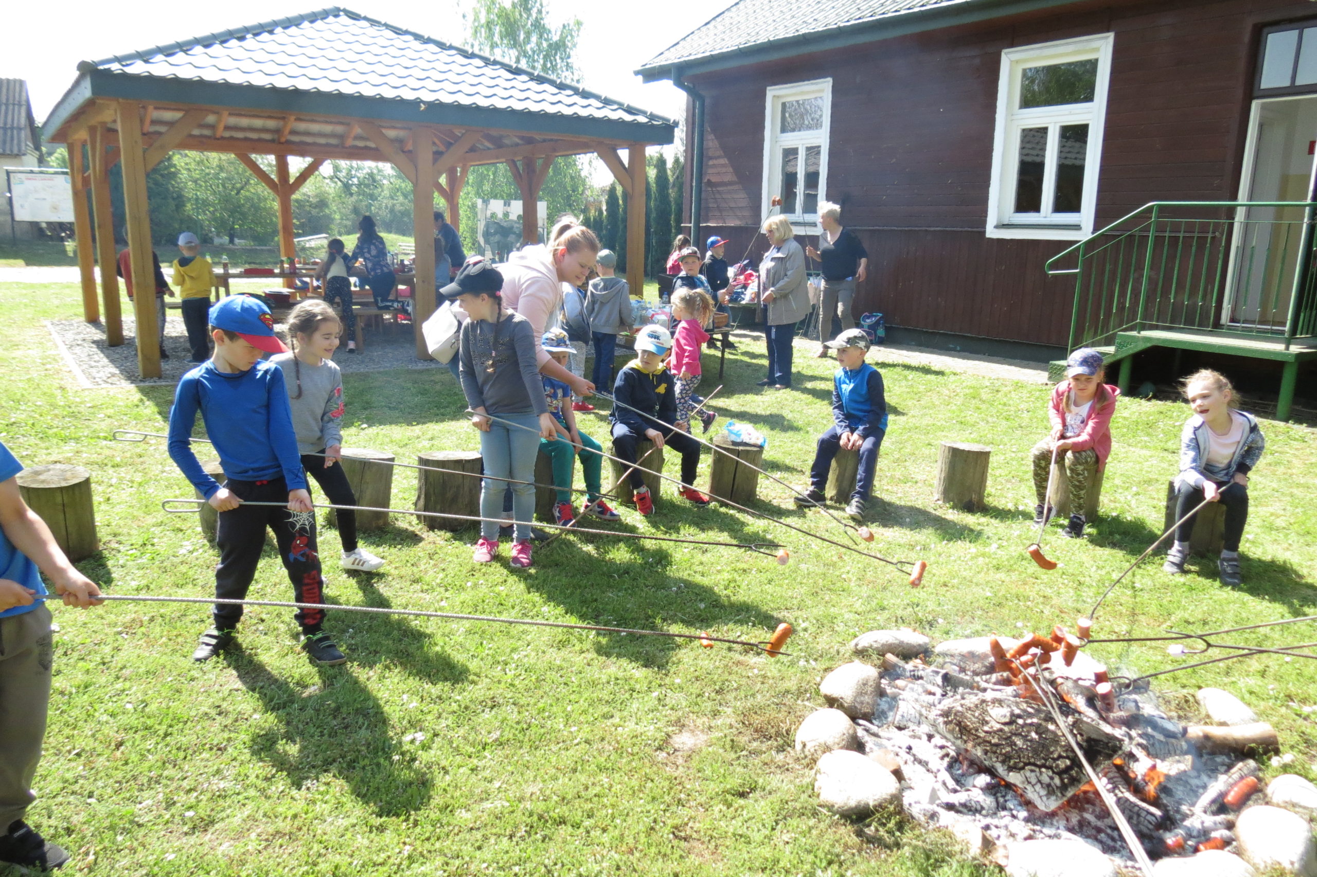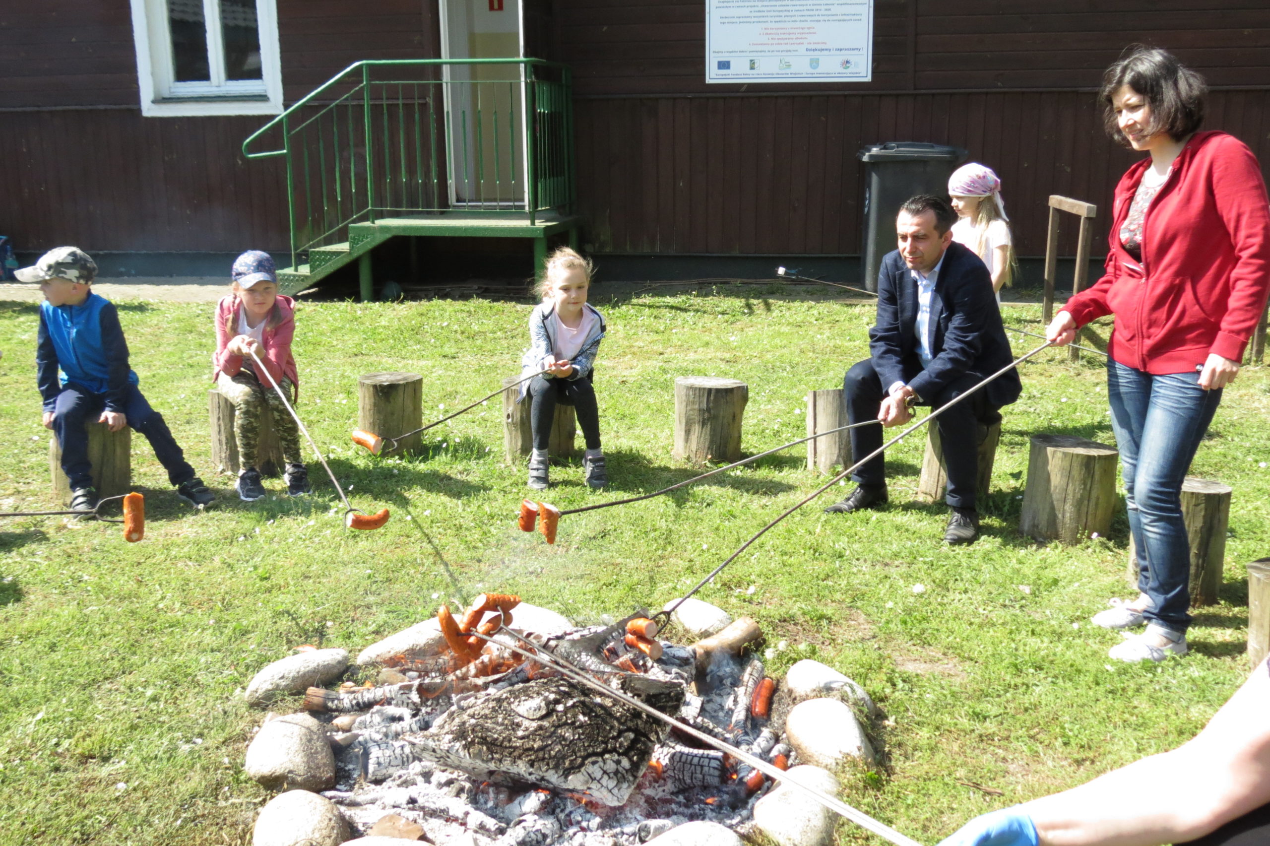 Po zasłużonej pacy przyszedł czas na odpoczynek przy ognisku połączonym ze słodkim poczęstunkiem i puszczaniem kolorowych baniek.