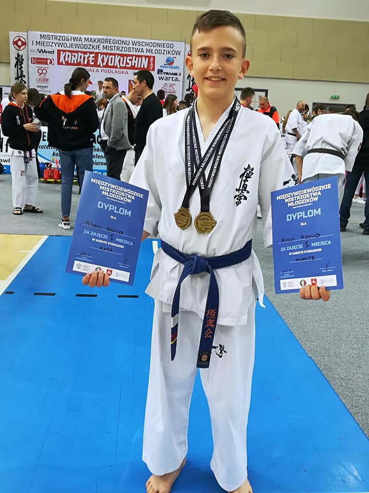 - Alan Kania I m-ce w kategorii kumite młodzików – 45kg, I miejsce w kategorii kata
