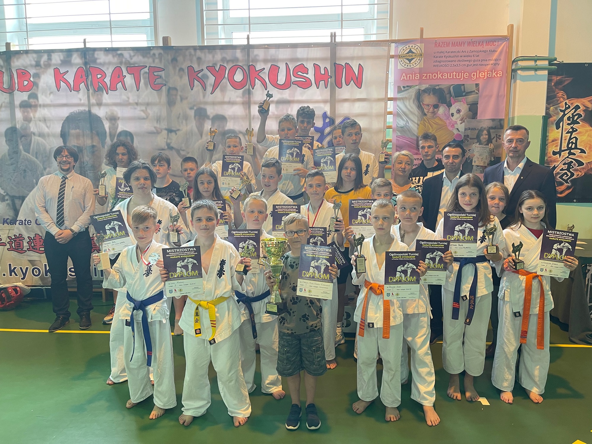 12 czerwca w hali sportowej Szkoły Podstawowej w Łabuńkach Pierwszych odbyły się Mistrzostwa Województwa Lubelskiego Młodzików i Juniorów Młodszych i Puchar Wójta Gminy Łabunie w Karate Kyokushin. Zawody miały szczególny charakter odbyły się pod hasłem: „Z nami Ania znokautuje glejaka !!!”