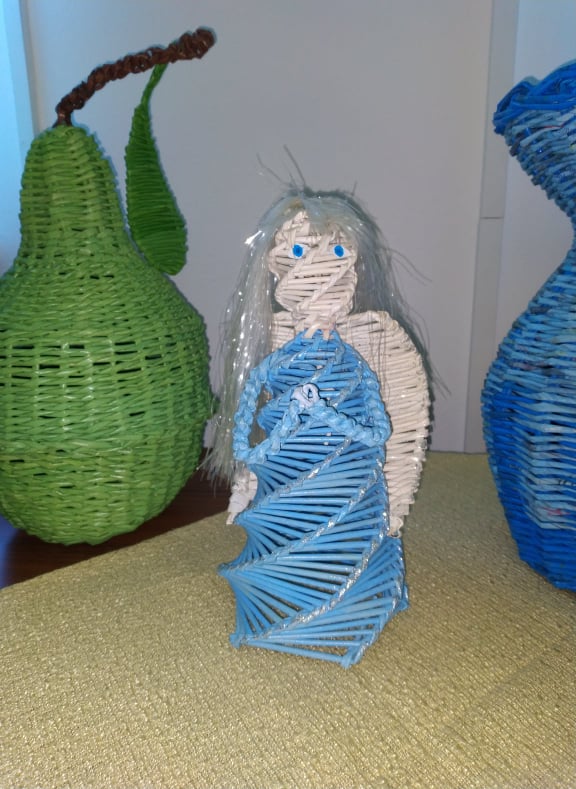 Autorka rękodzieła – Pani Anna Swaczyna (ur. w 1965 r.) jest rodowitą Ruszowianką. Zainteresowania estetyczne przejawiała od wielu lat. Przygodę ze zdobieniami rozpoczęła od wykonywania tortów okazjonalnych. Wykonywała i wykonuje okolicznościowe torty „figuratywne”, np. w kształcie księgi, auta, lalki. Owe wypieki, a także wykonane tradycyjną metodą pisanki prezentowała przed kilkoma laty na kiermaszach w Mirczu. Tam również pierwszy raz zetknęła się z metodą wyplatania przedmiotów z wikliny papierowej.