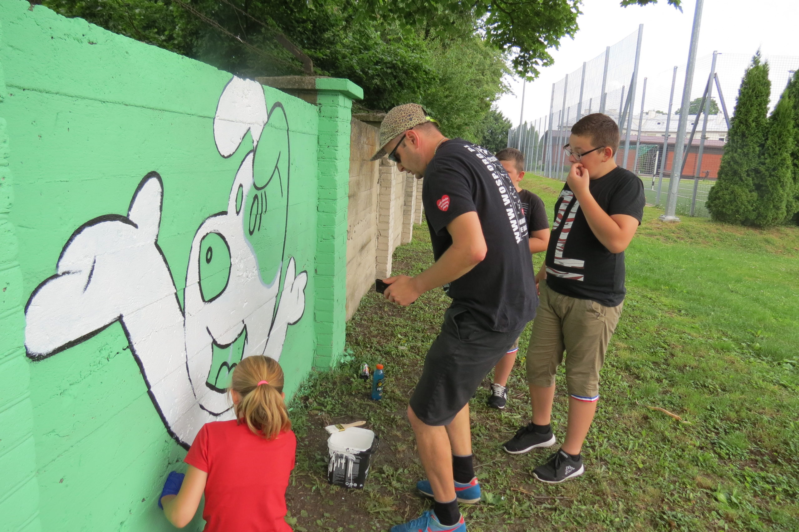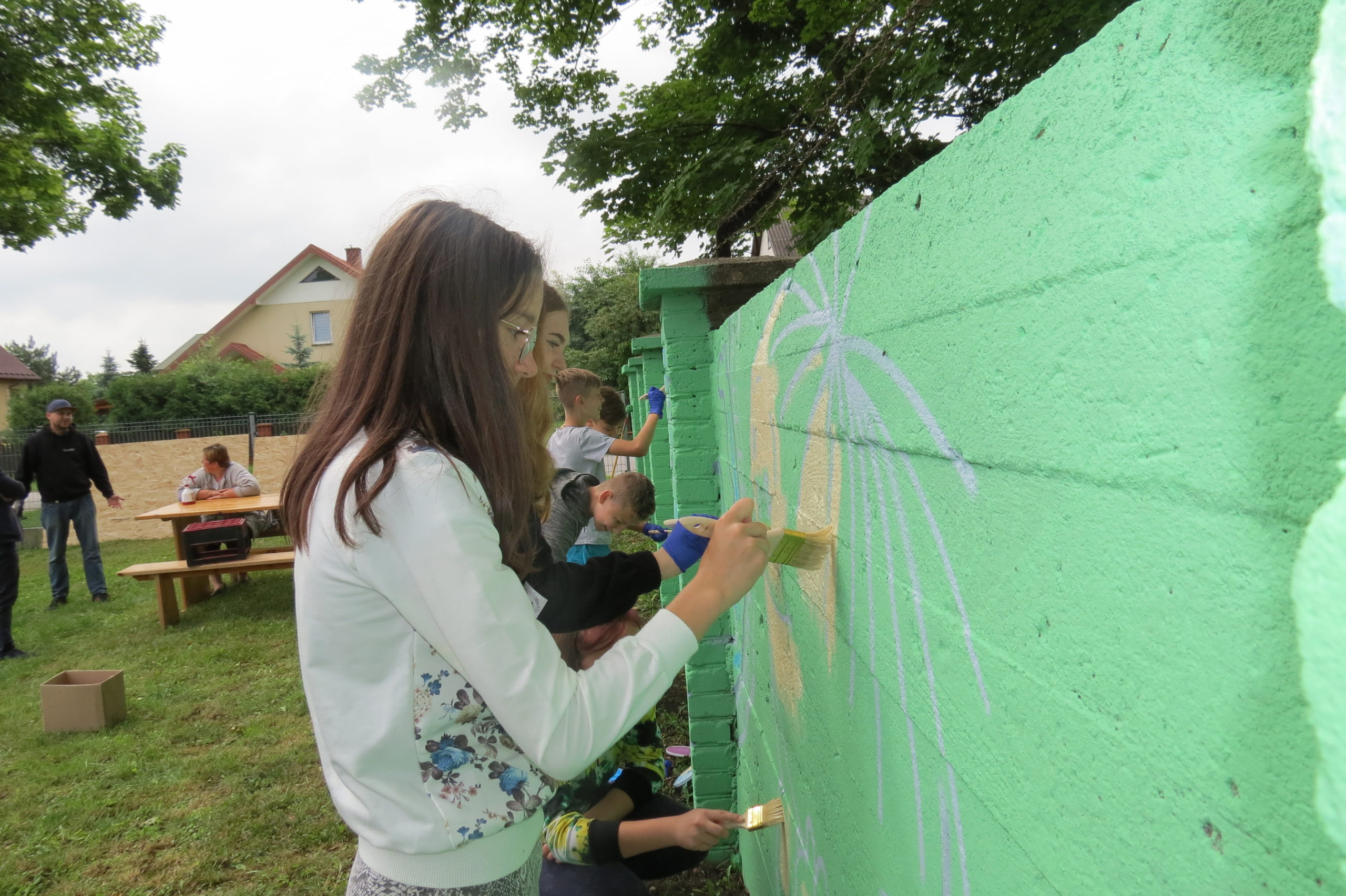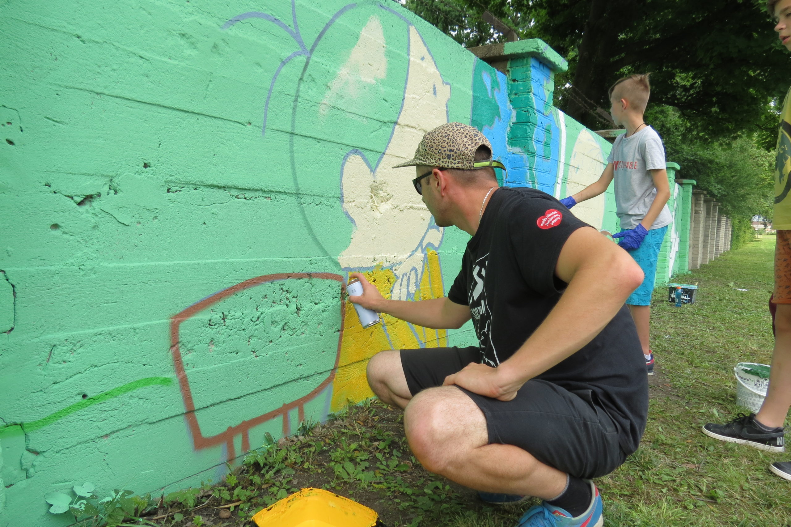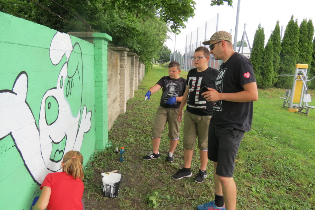 Siedemnastoosobowa ekipa młodzieży z gminy Łabunie rozpoczęła dwudniowe warsztaty graffiti. Pierwszy dzień to kolorowanie bajkowych postaci na murach przy placu zabaw w Łabuniach. Zamojska grupa Stforky dzień wcześniej przygotowała szkice bajkowych postaci – Pszczółkę Maję, Bolka i Lolka oraz Reksia. Już teraz zrobiło się radośniej i kolorowo. To wszystko dzięki młodym mieszkańcom gminy Łabunie i Stforkom, którzy pomagają pokolorować nam miejsca, w których po prostu zrobi się weselej…