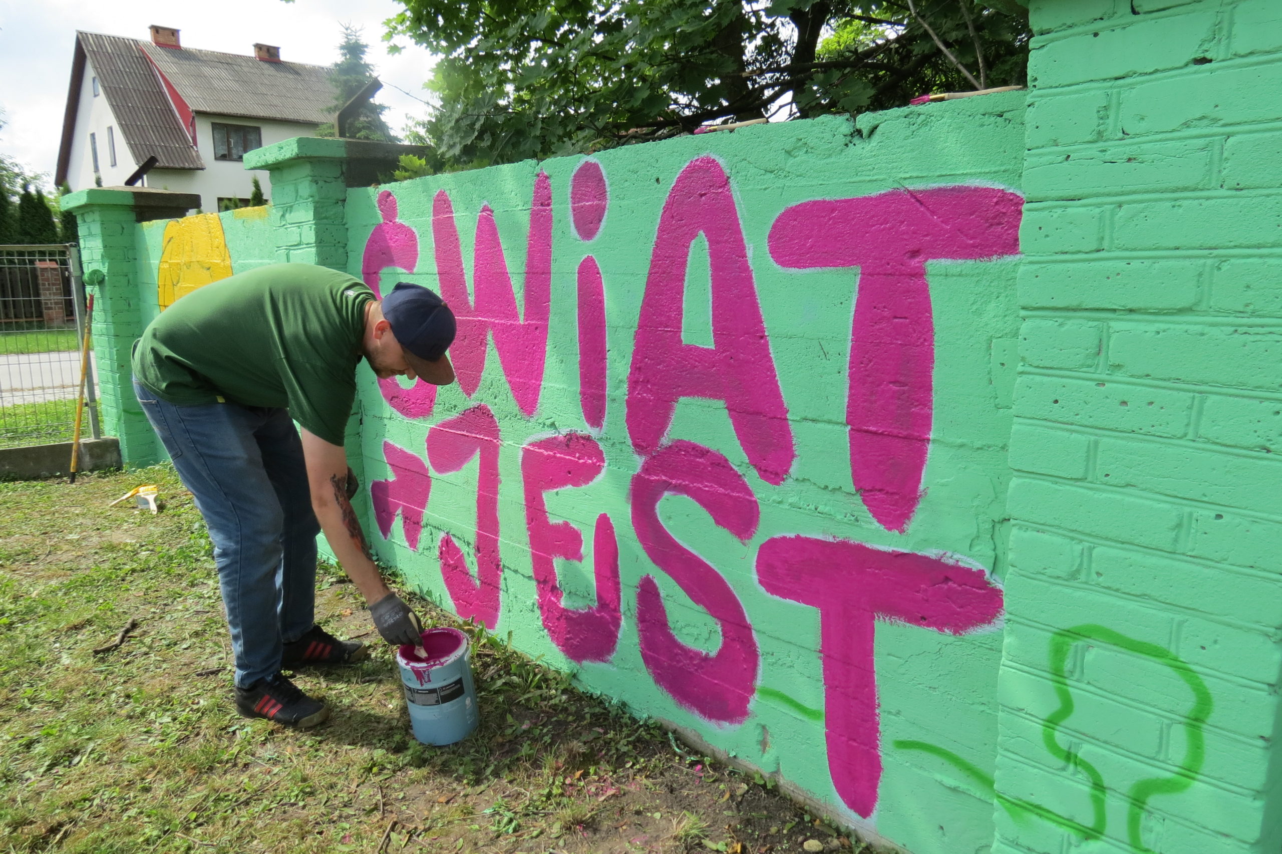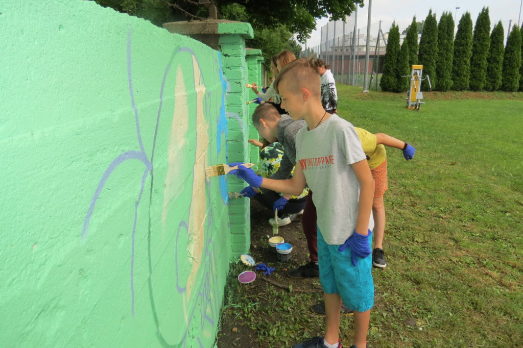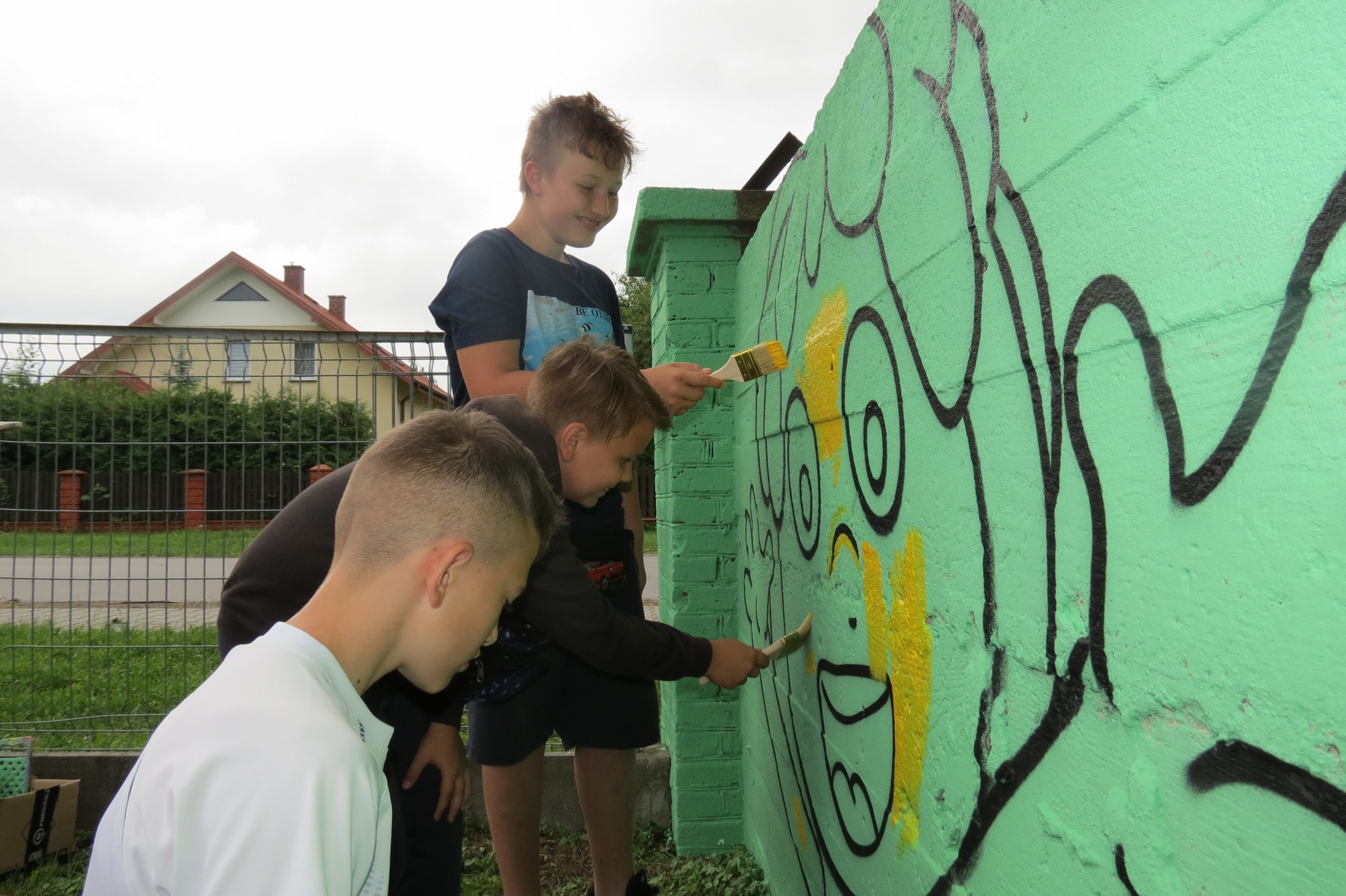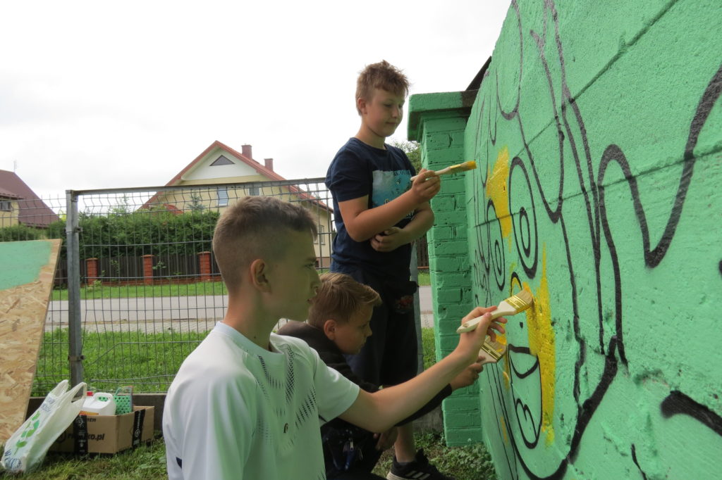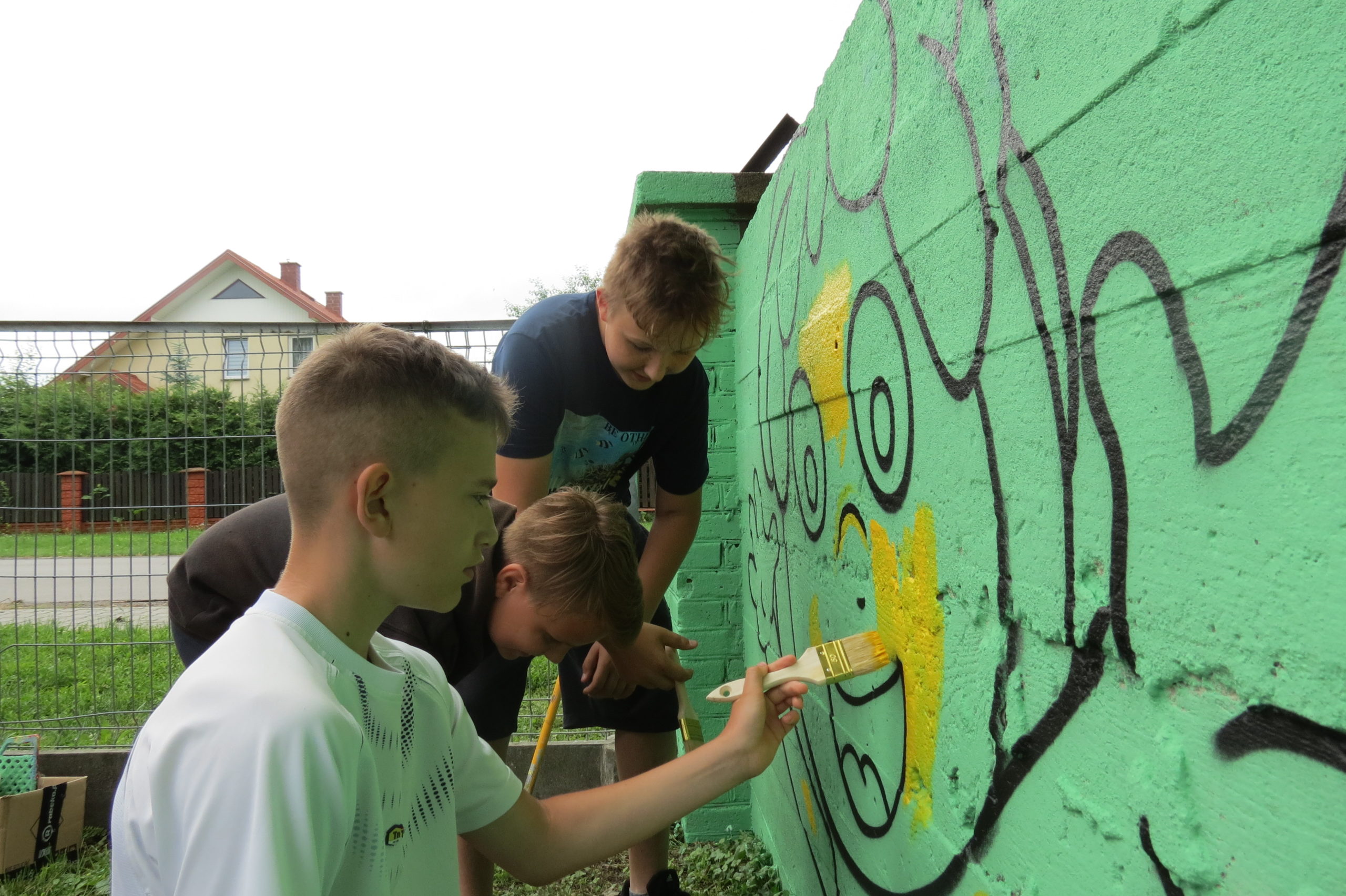 Siedemnastoosobowa ekipa młodzieży z gminy Łabunie rozpoczęła dwudniowe warsztaty graffiti. Pierwszy dzień to kolorowanie bajkowych postaci na murach przy placu zabaw w Łabuniach. Zamojska grupa Stforky dzień wcześniej przygotowała szkice bajkowych postaci – Pszczółkę Maję, Bolka i Lolka oraz Reksia. Już teraz zrobiło się radośniej i kolorowo. To wszystko dzięki młodym mieszkańcom gminy Łabunie i Stforkom, którzy pomagają pokolorować nam miejsca, w których po prostu zrobi się weselej…