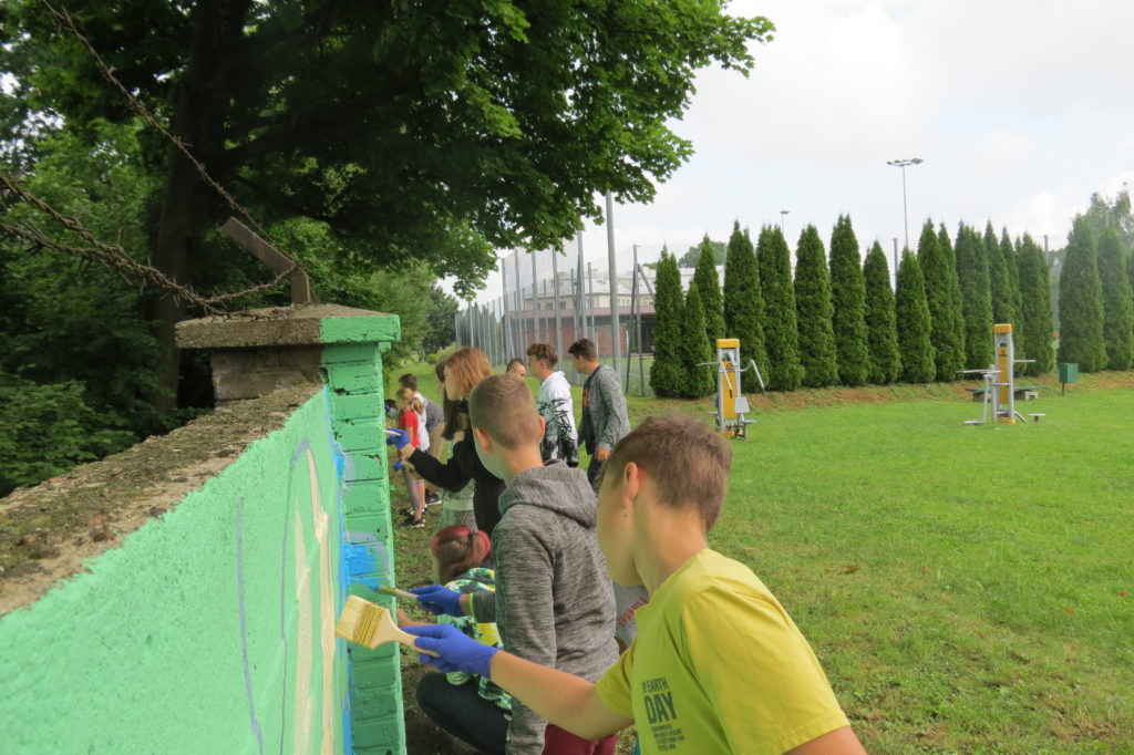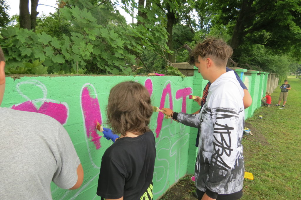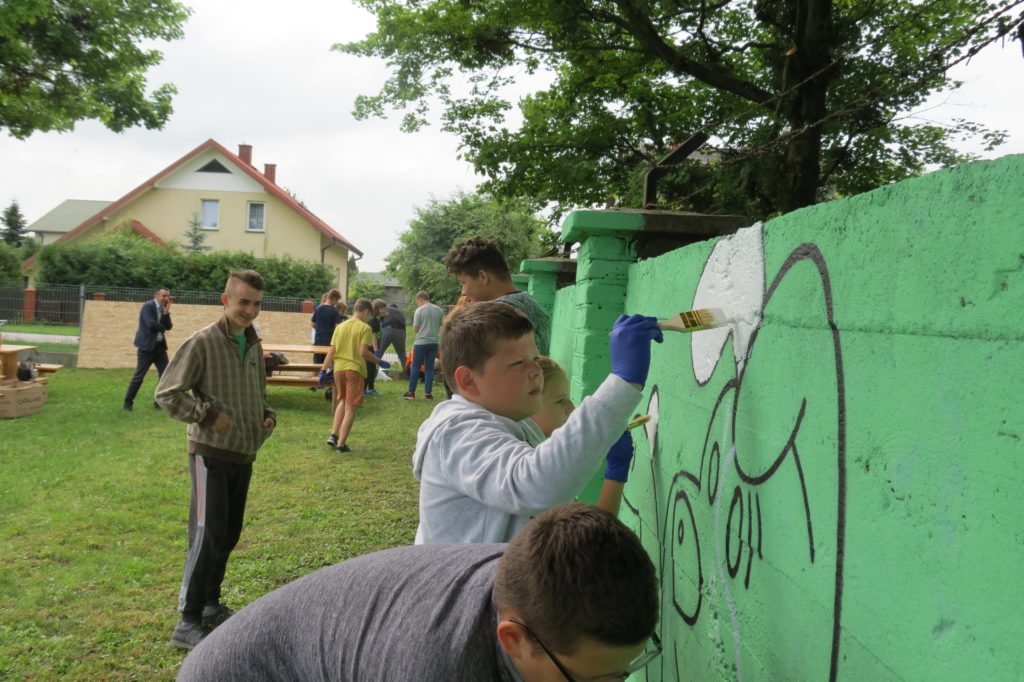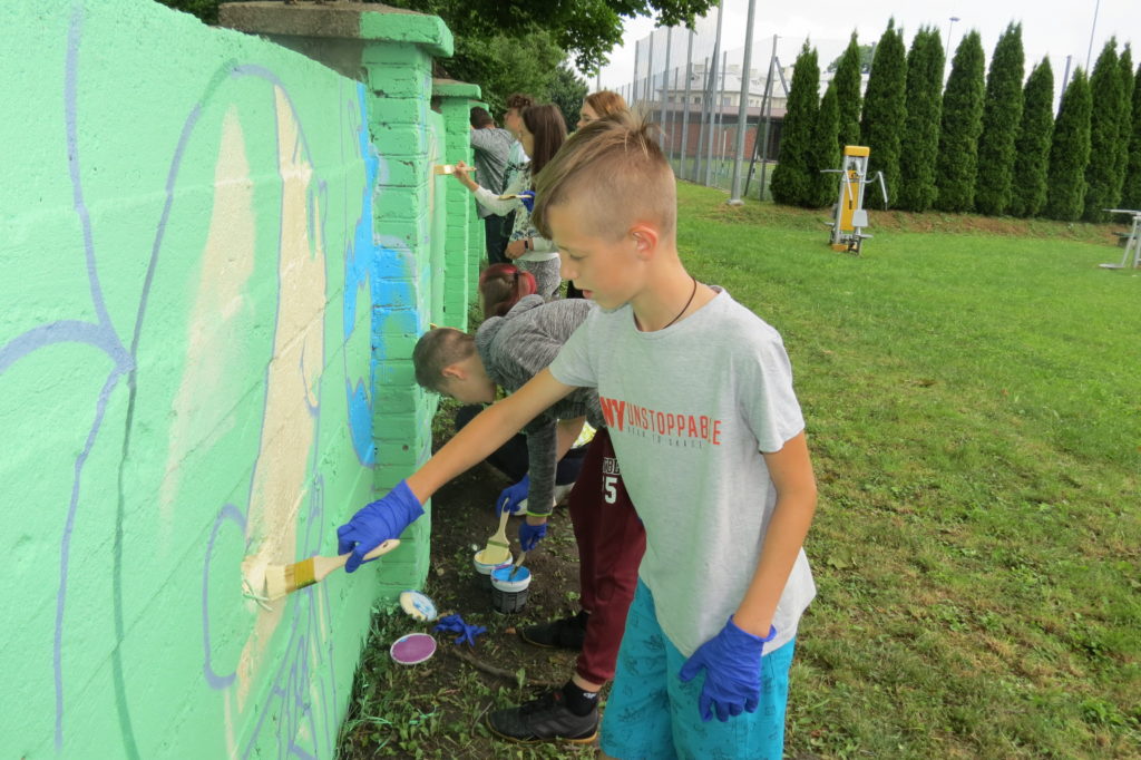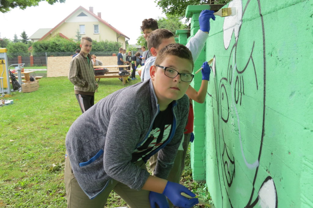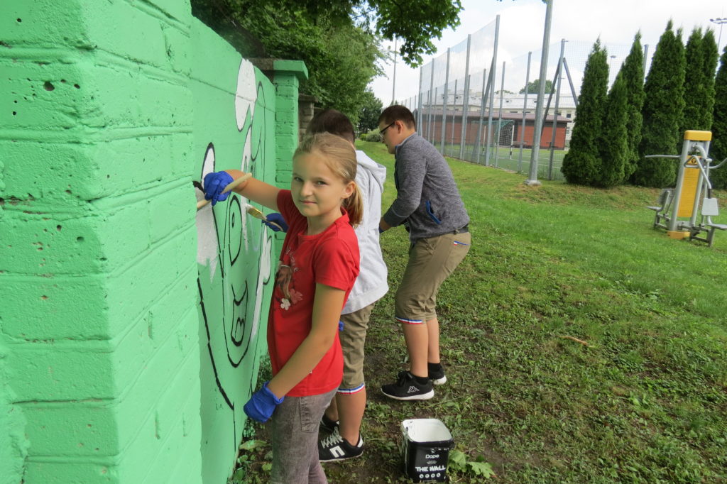 Siedemnastoosobowa ekipa młodzieży z gminy Łabunie rozpoczęła dwudniowe warsztaty graffiti. Pierwszy dzień to kolorowanie bajkowych postaci na murach przy placu zabaw w Łabuniach. Zamojska grupa Stforky dzień wcześniej przygotowała szkice bajkowych postaci – Pszczółkę Maję, Bolka i Lolka oraz Reksia. Już teraz zrobiło się radośniej i kolorowo. To wszystko dzięki młodym mieszkańcom gminy Łabunie i Stforkom, którzy pomagają pokolorować nam miejsca, w których po prostu zrobi się weselej…