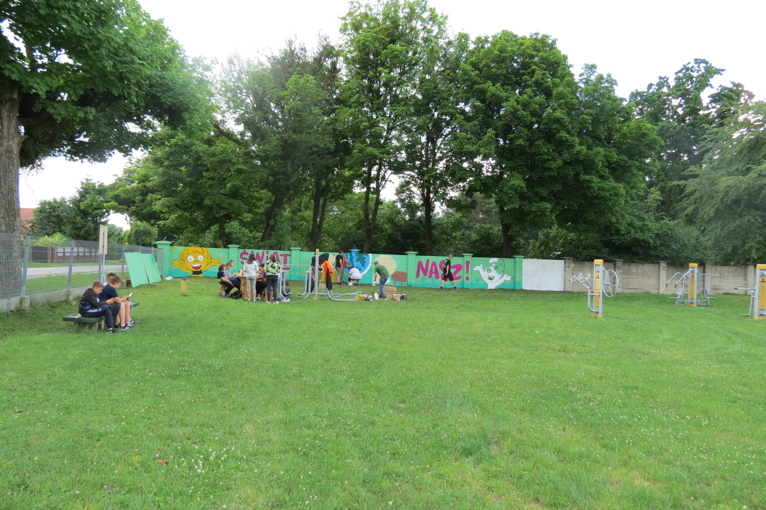 W piątek, 2 lipca razem z zamojską grupą Stforky rozpoczęliśmy dwudniowe warsztaty graffiti. Kolorujemy plac zabaw przy boisku Orlik w Łabuniach.