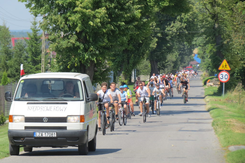 Zgromadzonych uczestników przed Remizą OSP w Łabuńkach Pierwszych powitał Wójt Gminy Łabunie – Mariusz Kukiełka oraz przewodnicząca KGW w Łabuńkach Pierwszych – Elżbieta Garbacz. Potem rowerzyści ruszyli w trasę. Tradycyjnie rajd prowadził jeden z organizatorów wydarzenia – sołtys Łabuniek Pierwszych, Andrzej Grula. Cyklistów zabezpieczał Posterunek Policji w Łabuniach oraz Ochotnicza Straż Pożarna w Łabuńkach Pierwszych. Uczestnicy przejechali przez Barchaczów, Łabunie, Ruszów, Wierzbie i Łabuńki Pierwsze. Po drodze były krótkie odpoczynki (m. in. przy źródle w Barchaczowie i Pawim Piórze w Łabuniach). Wszyscy cali i zdrowi dojechali na metę – do zespołu pałacowo-parkowego w Łabuńkach Pierwszych. Dzięki uprzejmości Dyrektora Hospicjum Santa Galla w Łabuńkach Pierwszych – ks. Michała Przybysza – na terenie Zespołu można było zorganizować poczęstunek dla uczestników rajdu. Smakołyki dla cyklistów tradycyjnie przygotowało Koło Gospodyń Wiejskich w Łabuńkach Pierwszych. Były pierogi (panie ulepiły 1100 pierogów!), kiełbaska z ogniska oraz pączki. Po krótkim odpoczynku rozpoczęły się konkurencje sportowe i rowerowe, w ramach których uczestnicy wygrali gadżety rowerowe: pompki, bidony z koszykami, elektroniczne zegarki na rowery i zapięcia do stojaków. Finał rajdu to losowanie dwóch rowerów w kategoriach: dzieci i dorośli. W tej pierwszej wygrała Zuzia Dębkowska z Ruszowa, a w kat. dorośli – Ewa Bajaka z Łabuniek Pierwszych. Wszystkie nagrody oraz poczęstunek sfinansował Wójt Gminy Łabunie – Mariusz Kukiełka.