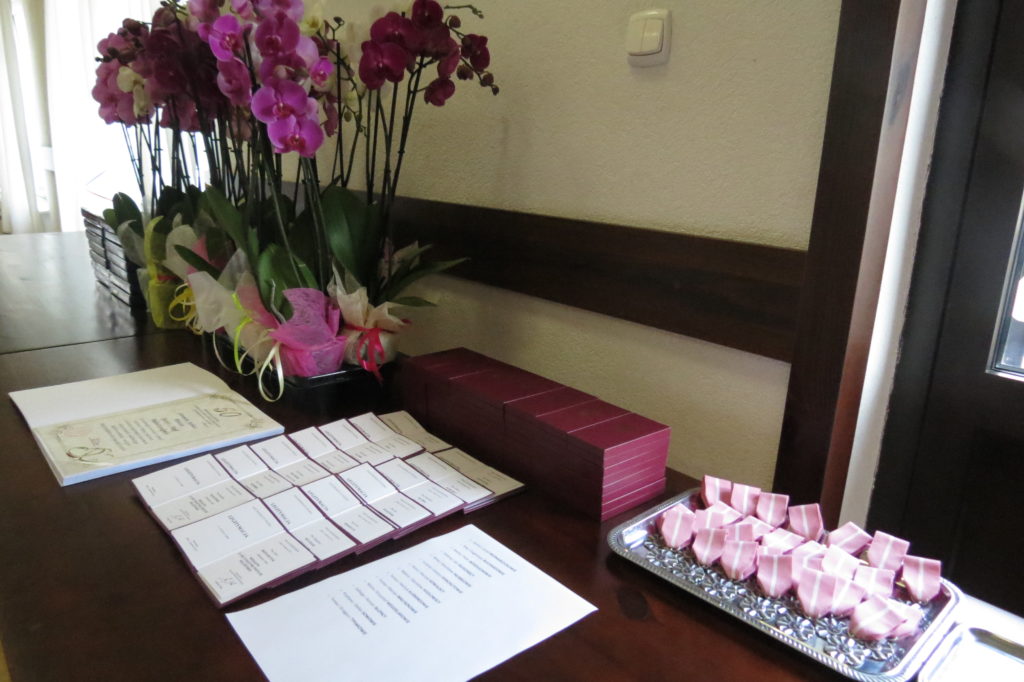 Zgromadzeni jubilaci oprócz medali otrzymali również słodki upominek i kwiaty.