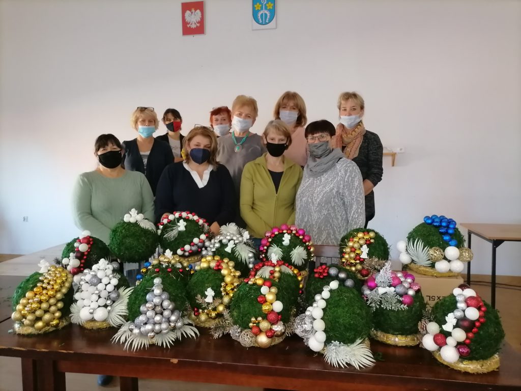 Stroiki powstały ze styropianowych kul, do których klejony był mech, bombki i inne ozdoby. W ruch poszły pędzle, kleje i co najważniejsze – twórcza inwencja uczestniczek wydarzenia. Połączenie tych wszystkich elementów dało artystyczny efekt. Wielkie brawa dla Pań i podziękowania za udział w tym przedsięwzięciu. Dziękujemy również Pani Marzenie Maziarczyk z Powiatowego Zespołu Doradztwa Rolniczego w Zamościu z siedzibą w Sitnie za organizację i realizację warsztatów.
