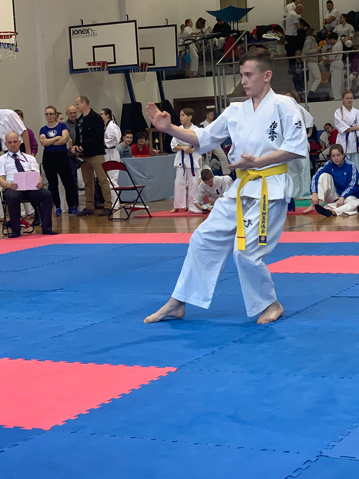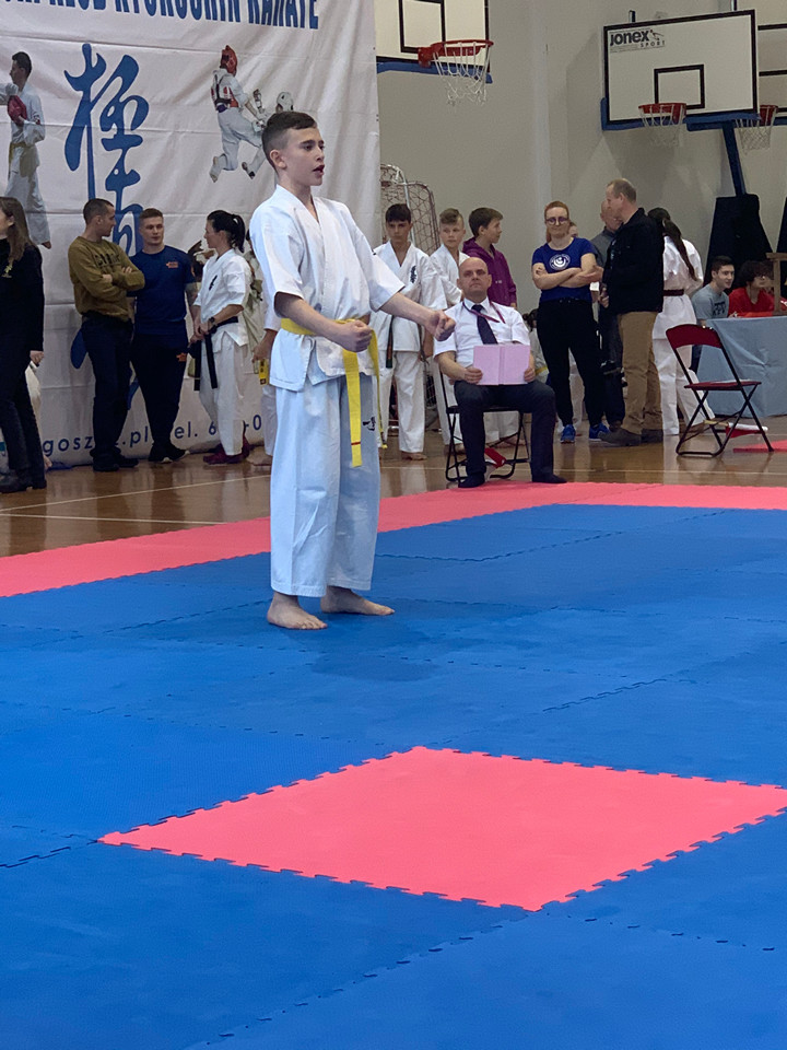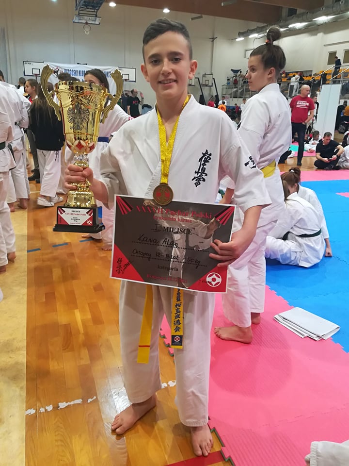 Alan Kania, aby stanąć na podium musiał stoczyć kilka walk z równie dobrze przygotowanym przeciwnikiem. Samozaparcie i skuteczna taktyka dały Alanowi oczekiwany rezultat – Mistrzostwo I miejsce w kategorii kumite młodzików -50kg oraz V miejsce w kategorii kata.