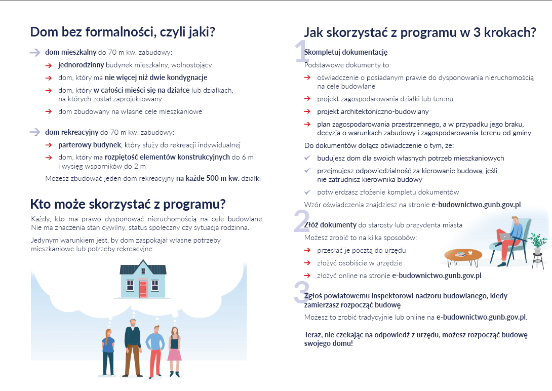 Na stronie internetowej www.dombezformalnosci.gov.pl jest wyjaśnienie, na czym polega program, jak z niego skorzystać krok po kroku, odpowiedzi na często zadawane pytania, a także inne materiały edukacyjne.