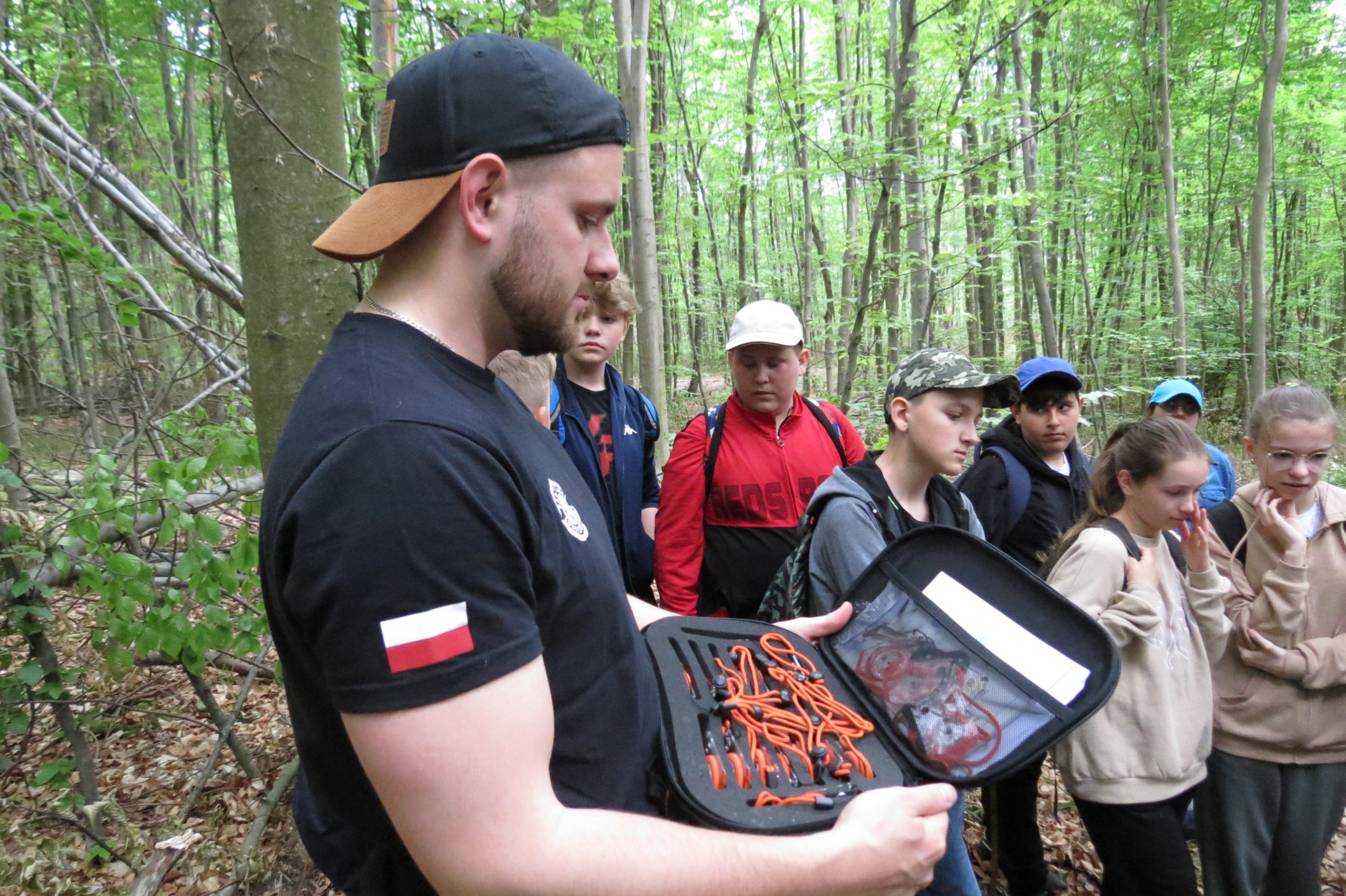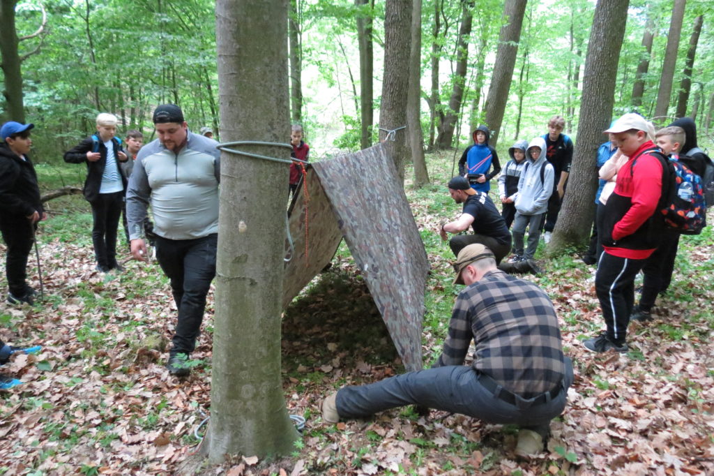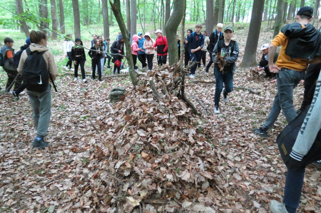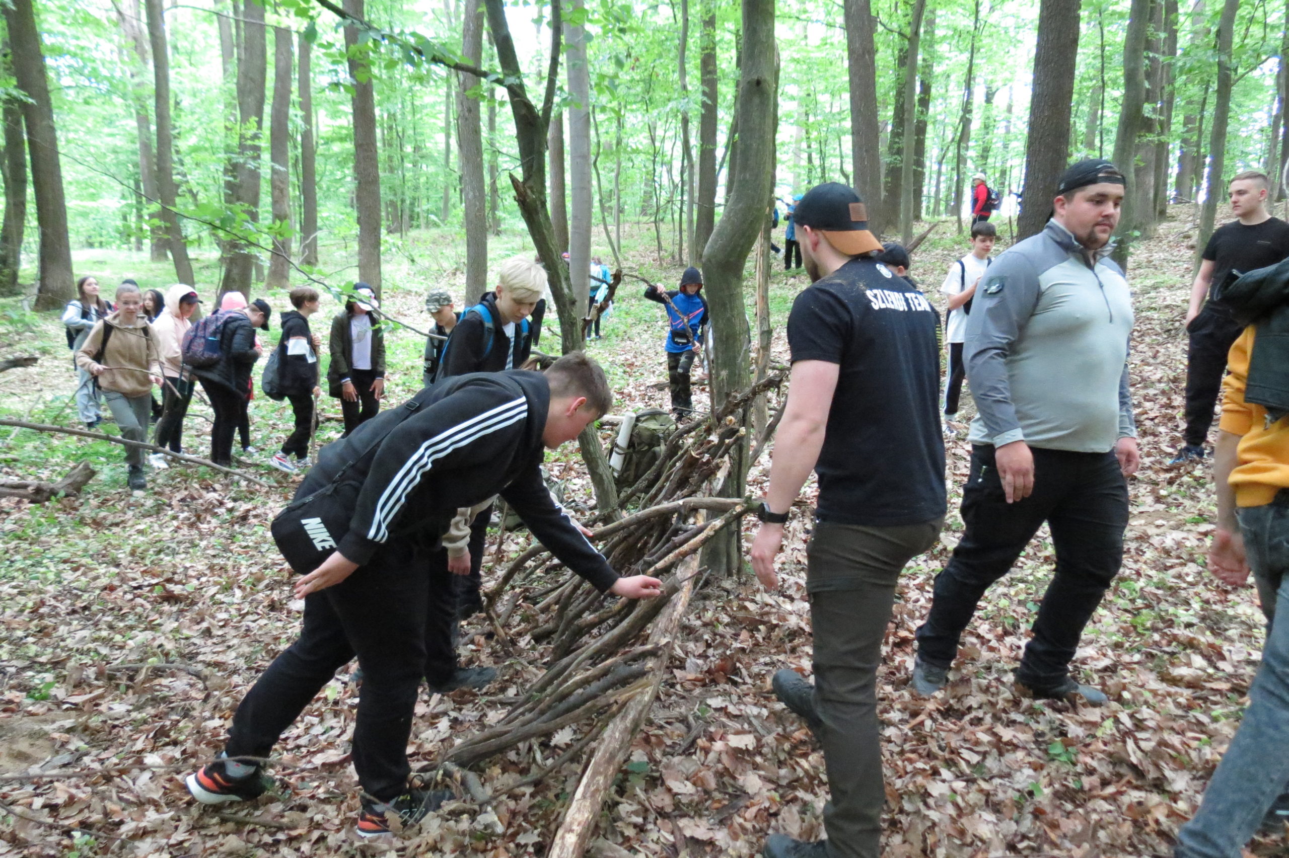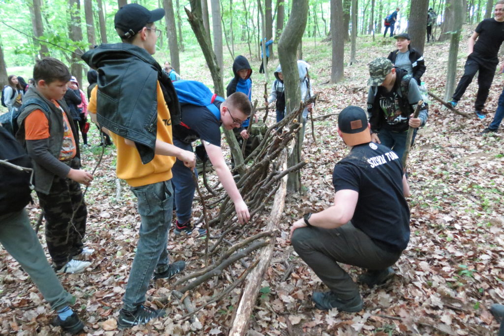 Leśny survival odbył się w piątek, 27 maja. Warsztaty przeprowadzili prawdziwi licencjonowani eksperci od sztuki przetrwania – Partyzanci Lubelszczyzny, szkolący również wojskowych, mający swoje telewizyjne programy m.in. w Polsat Sport. Spod parkingu w Łabuniach-Reformie grupa ochotników wyruszyła w las. Tu oprócz wiedzy teoretycznej w ruch poszły kompasy. Dzieci uczyły się, jak się nim posługiwać i jak inaczej poradzić sobie, gdy zabłądzimy lub gdy mech wyznaczający kierunek północny rośnie również po południowej stronie. Uczestnicy dowiedzieli się także, jakie rośliny zabezpieczają przed kleszczami i komarami, gdy nie mamy spray’a od owadów, co jeść, by przeżyć, jak pozyskać wodę. Młodzi survivalowcy budowali też szałas i uczyli się różnych metod wiązania lin w celu ewentualnego obezwładnienia napastnika lub ratowania w terenach górskich czy skalistych. Na koniec była próba wzniecania ognia przy pomocy krzesiwa. Po takiej dawce wiedzy przyszedł czas na odpoczynek zorganizowany w Leśniczówce w Łabuniach-Reformie. Było ognisko, pieczenie kiełbasek i jeszcze na koniec – survivalowa pierwsza pomoc, o której opowiadał ratownik medyczny.
