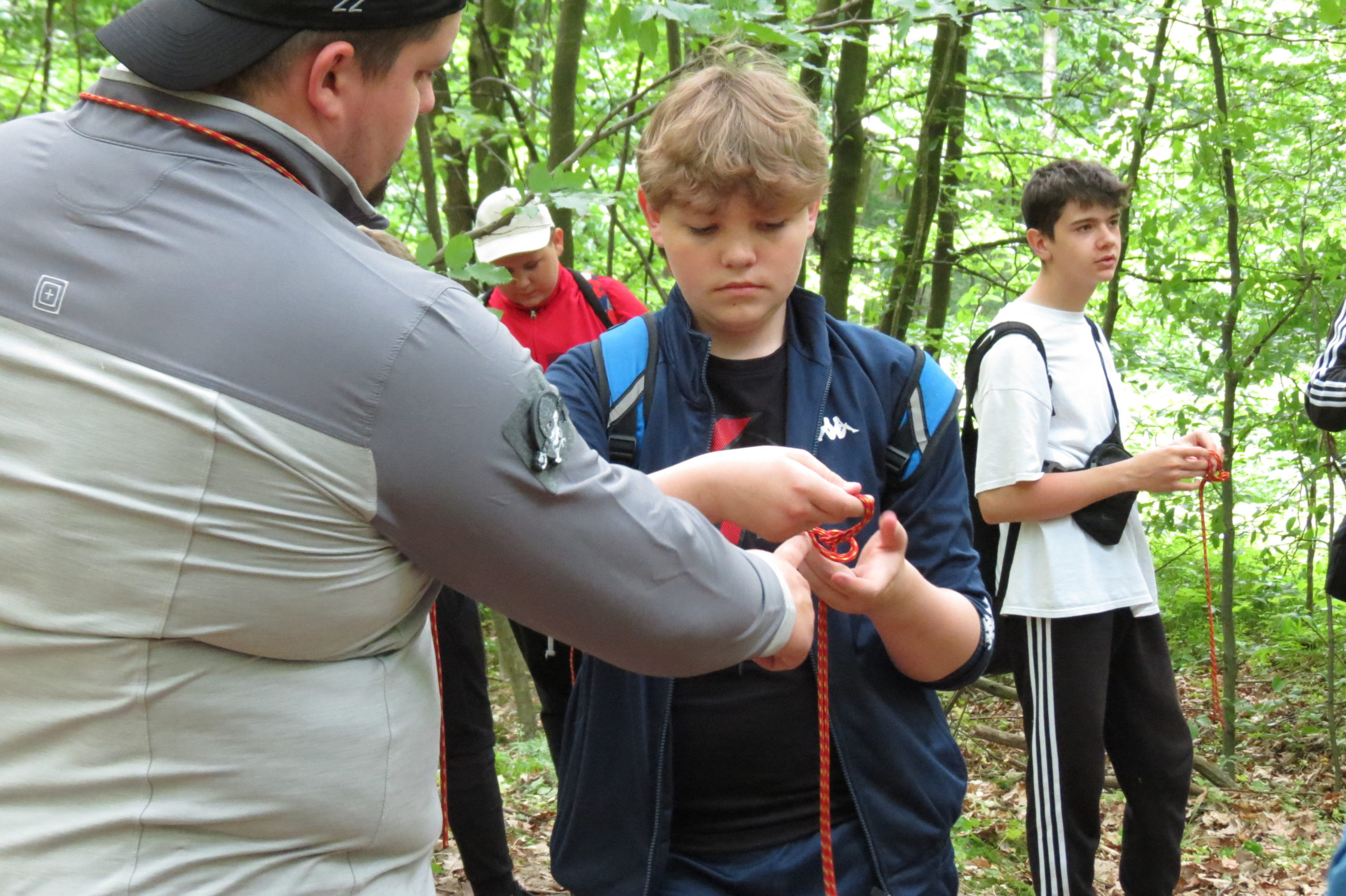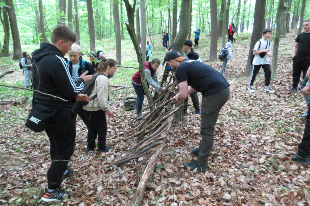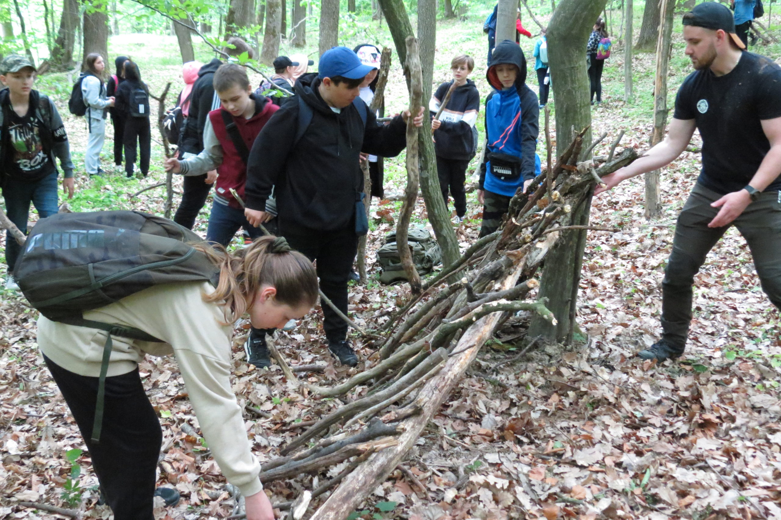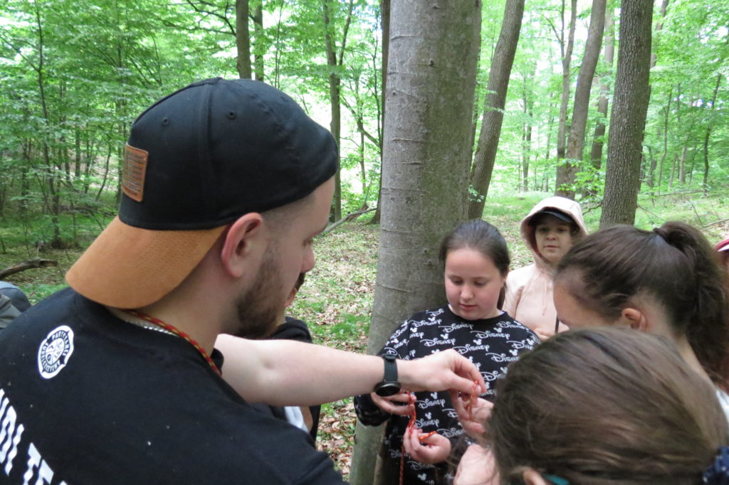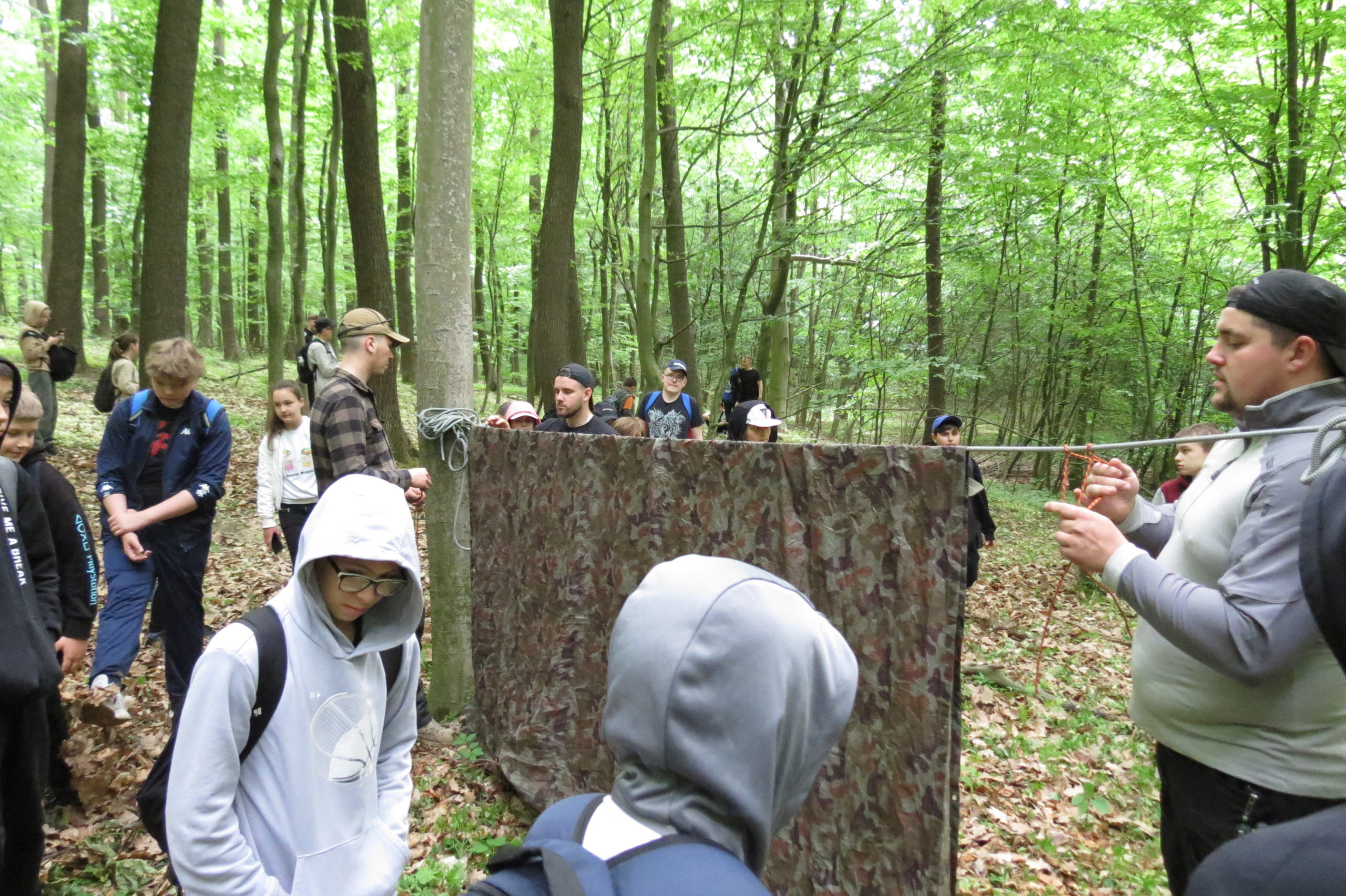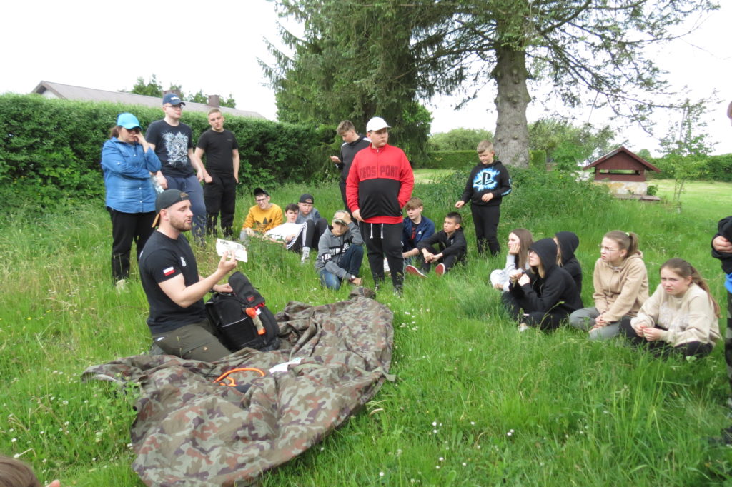 Leśny survival odbył się w piątek, 27 maja. Warsztaty przeprowadzili prawdziwi licencjonowani eksperci od sztuki przetrwania – Partyzanci Lubelszczyzny, szkolący również wojskowych, mający swoje telewizyjne programy m.in. w Polsat Sport. Spod parkingu w Łabuniach-Reformie grupa ochotników wyruszyła w las. Tu oprócz wiedzy teoretycznej w ruch poszły kompasy. Dzieci uczyły się, jak się nim posługiwać i jak inaczej poradzić sobie, gdy zabłądzimy lub gdy mech wyznaczający kierunek północny rośnie również po południowej stronie. Uczestnicy dowiedzieli się także, jakie rośliny zabezpieczają przed kleszczami i komarami, gdy nie mamy spray’a od owadów, co jeść, by przeżyć, jak pozyskać wodę. Młodzi survivalowcy budowali też szałas i uczyli się różnych metod wiązania lin w celu ewentualnego obezwładnienia napastnika lub ratowania w terenach górskich czy skalistych. Na koniec była próba wzniecania ognia przy pomocy krzesiwa. Po takiej dawce wiedzy przyszedł czas na odpoczynek zorganizowany w Leśniczówce w Łabuniach-Reformie. Było ognisko, pieczenie kiełbasek i jeszcze na koniec – survivalowa pierwsza pomoc, o której opowiadał ratownik medyczny.