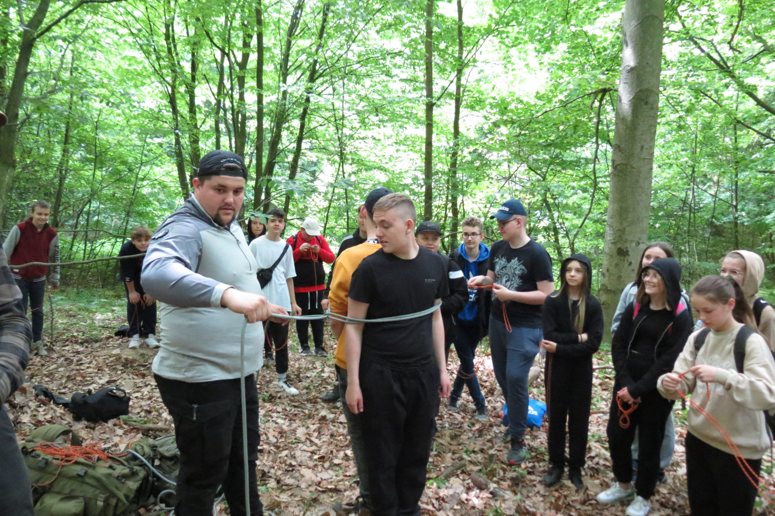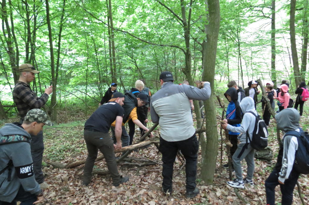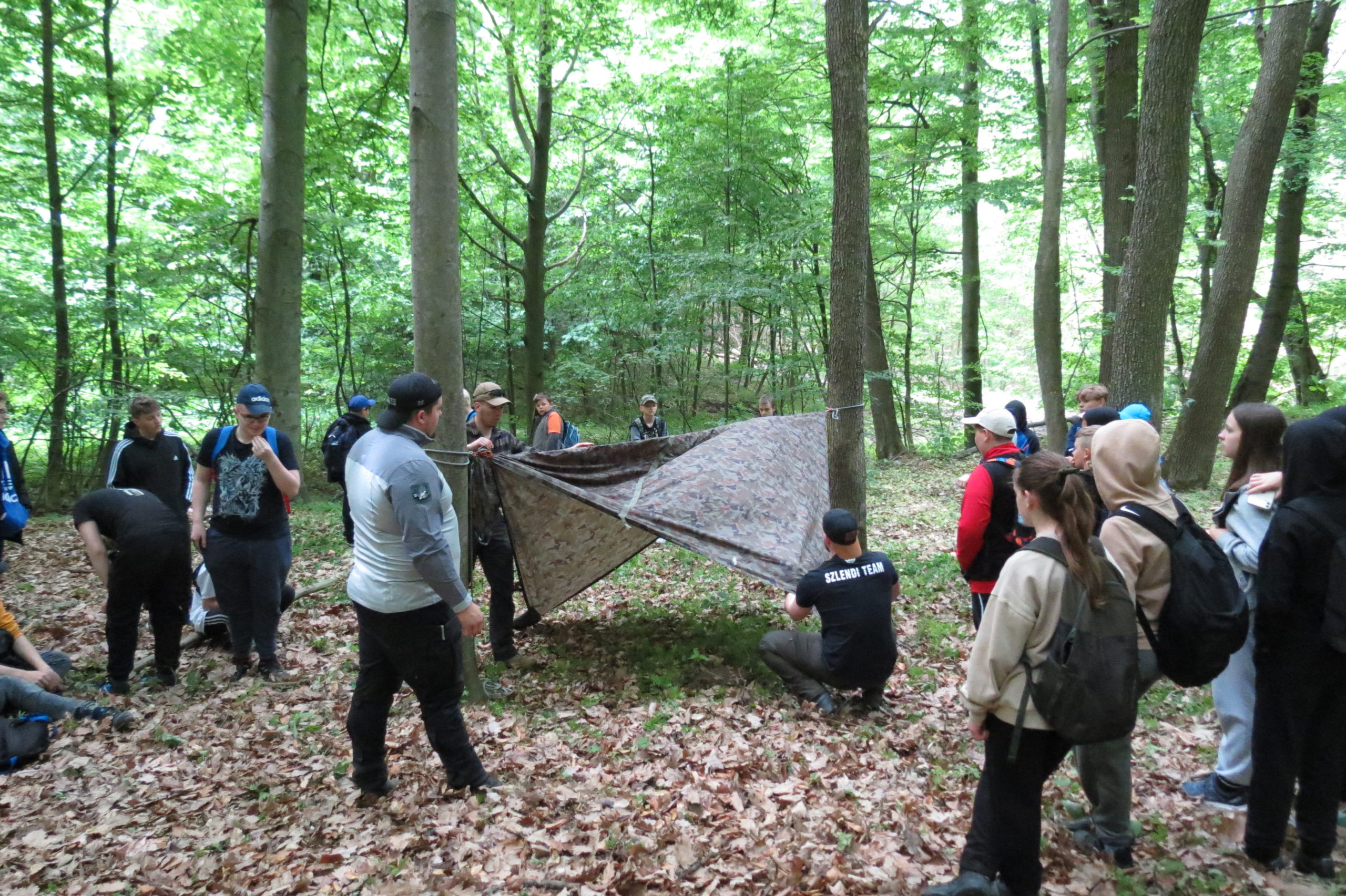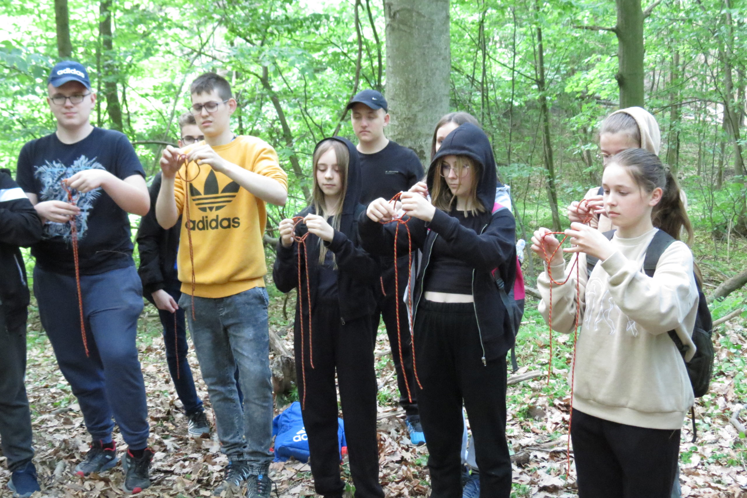 Leśny survival odbył się w piątek, 27 maja. Warsztaty przeprowadzili prawdziwi licencjonowani eksperci od sztuki przetrwania – Partyzanci Lubelszczyzny, szkolący również wojskowych, mający swoje telewizyjne programy m.in. w Polsat Sport. Spod parkingu w Łabuniach-Reformie grupa ochotników wyruszyła w las. Tu oprócz wiedzy teoretycznej w ruch poszły kompasy. Dzieci uczyły się, jak się nim posługiwać i jak inaczej poradzić sobie, gdy zabłądzimy lub gdy mech wyznaczający kierunek północny rośnie również po południowej stronie. Uczestnicy dowiedzieli się także, jakie rośliny zabezpieczają przed kleszczami i komarami, gdy nie mamy spray’a od owadów, co jeść, by przeżyć, jak pozyskać wodę. Młodzi survivalowcy budowali też szałas i uczyli się różnych metod wiązania lin w celu ewentualnego obezwładnienia napastnika lub ratowania w terenach górskich czy skalistych. Na koniec była próba wzniecania ognia przy pomocy krzesiwa. Po takiej dawce wiedzy przyszedł czas na odpoczynek zorganizowany w Leśniczówce w Łabuniach-Reformie. Było ognisko, pieczenie kiełbasek i jeszcze na koniec – survivalowa pierwsza pomoc, o której opowiadał ratownik medyczny.