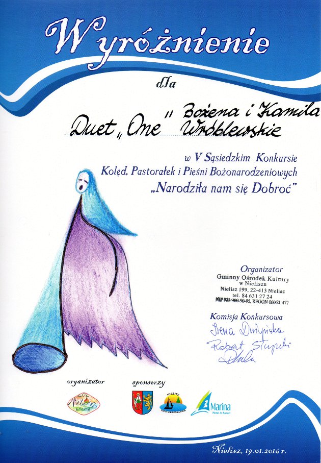 Chór “Konsonans” w kategorii zespołów otrzymał nagrodę specjalną Komisji Konkursowej, natomiast Duet “One” – wyróżnienie.