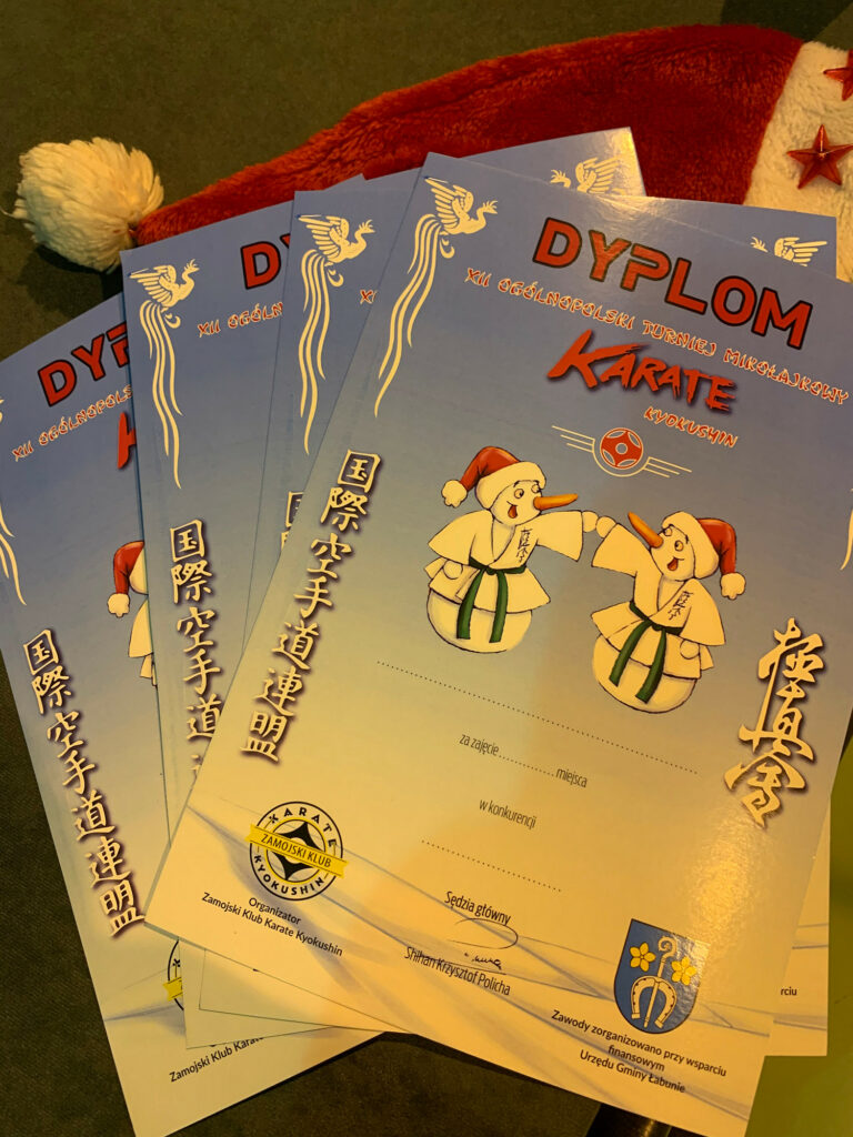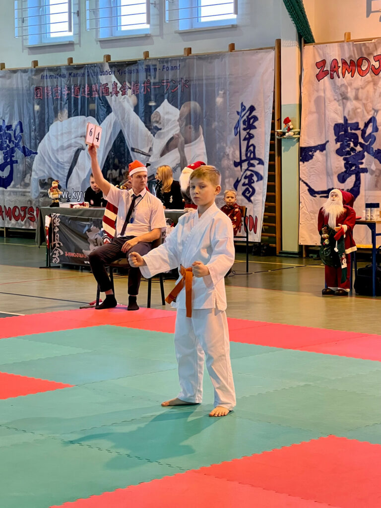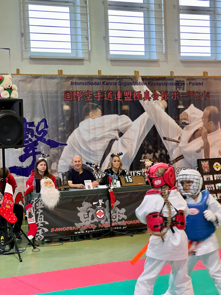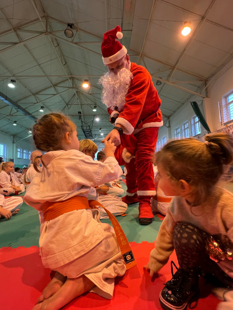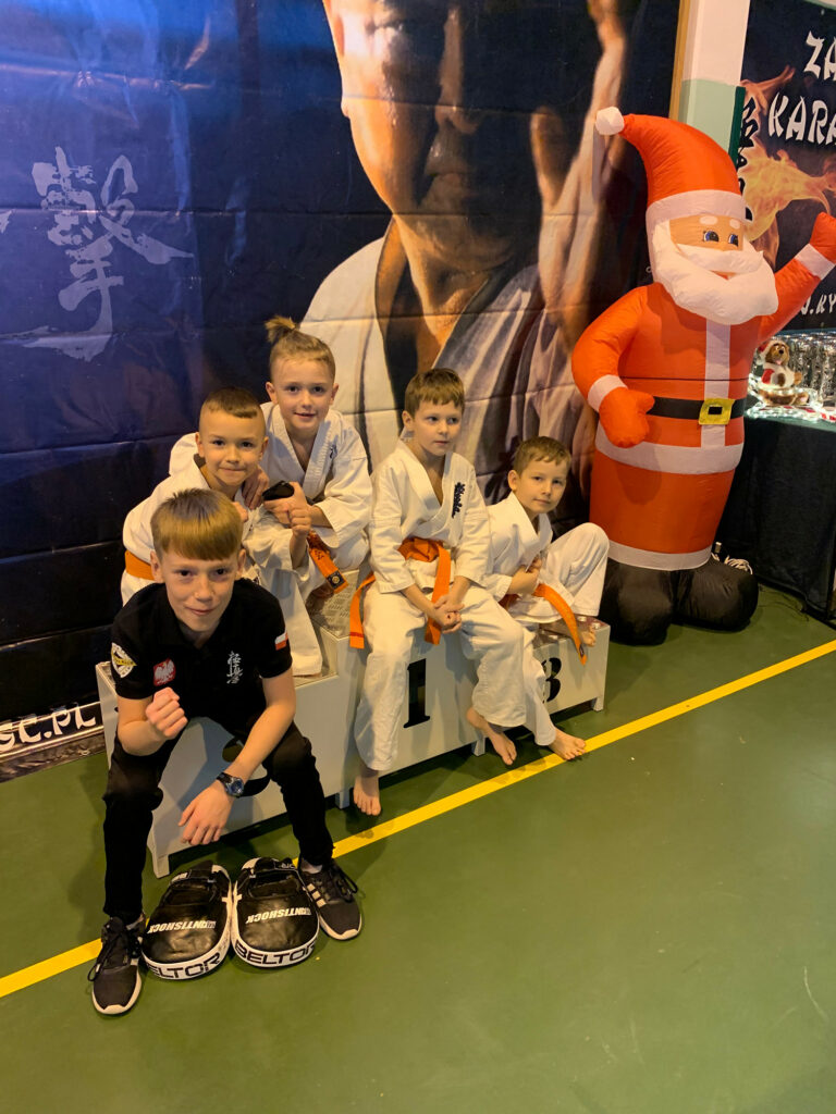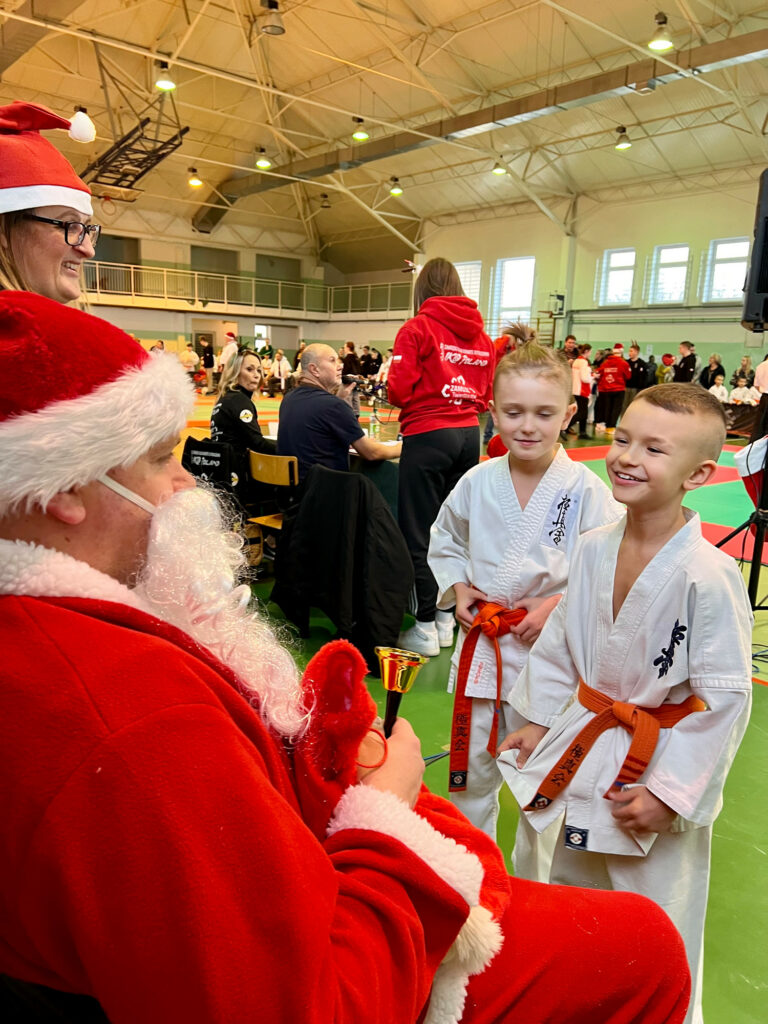 Dla większości karateka z roczników 2011-2016 był to pierwszy start na zawodach. Emocje dzieci i rodziców przeplatane radością, szczęściem i łzami. Uczestników Turnieju odwiedził ze słodkościami Św. Mikołaj.