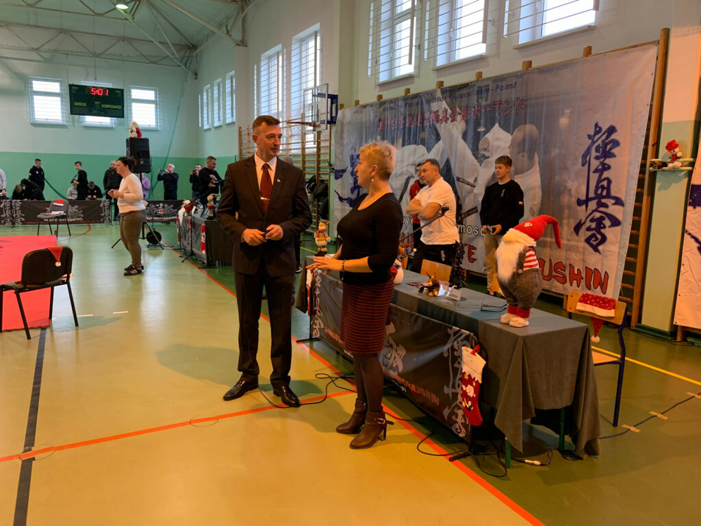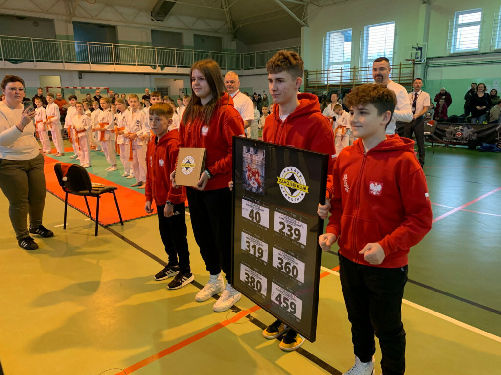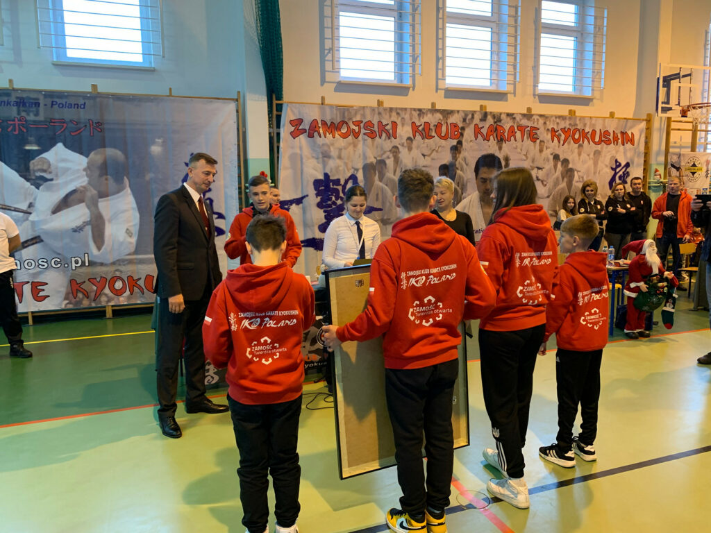 Nie sposób nie wspomnieć o pięknym prezencie jaki przygotowali uczestnicy/zwycięzcy Mistrzostw Europy Matylda Bień, Martyna Nowosad, Alan Kania, Dawid Kania, Mikołaj Łoza, Jakub Przyczyna. W imieniu powyższych Alan Kania i Matylda Bień przejęli na chwilę mikrofon i w pięknych słowach ujęli wdzięczność za przygotowanie opiekę i rodzinną atmosferę Shihan Krzysztofa Policha. Shihan otrzymał pamiątkowy album ze zdjęciami i osobistymi podziękowaniami od każdego zawodnika, antyramę z numerami uczestników Mistrzostw Europy. Zaskoczenie i wzruszenie można było zobaczyć nie tylko na twarzy Shihan Krzysztofa. Za piękny gest serdecznie dziękuję zawodnikom i rodzicom.