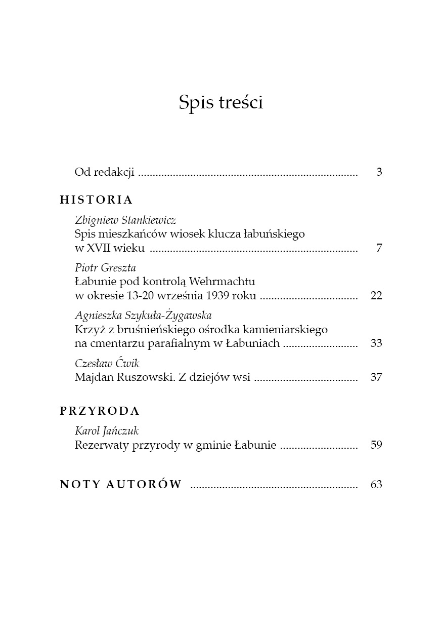 Zbigniew Stankiewicz odnalazł spis mieszkańców wiosek klucza łabuńskiego z XVII wieku, a Piotr Greszta bardzo wnikliwie scharakteryzował Łabunie pod kontrolą Wermachtu w okresie 13-20 września 1939 roku.