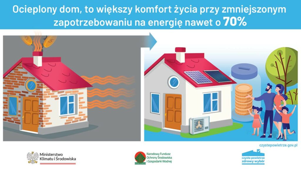 Warto zapoznać się z programem Czyste Powietrze, który oferuje nie tylko bezzwrotne wsparcie finansowe przyznawane przez Wojewódzkie Fundusze Ochrony Środowiska i Gospodarki Wodnej (wfośigw). Inwestycja, którą możesz sfinansować z Programu pozwoli na znaczne zmniejszenie zużycia energii przy utrzymaniu bezpieczeństwa i komfortu cieplnego w domu, a przy tym przyniesie niższe rachunki za ogrzewanie.