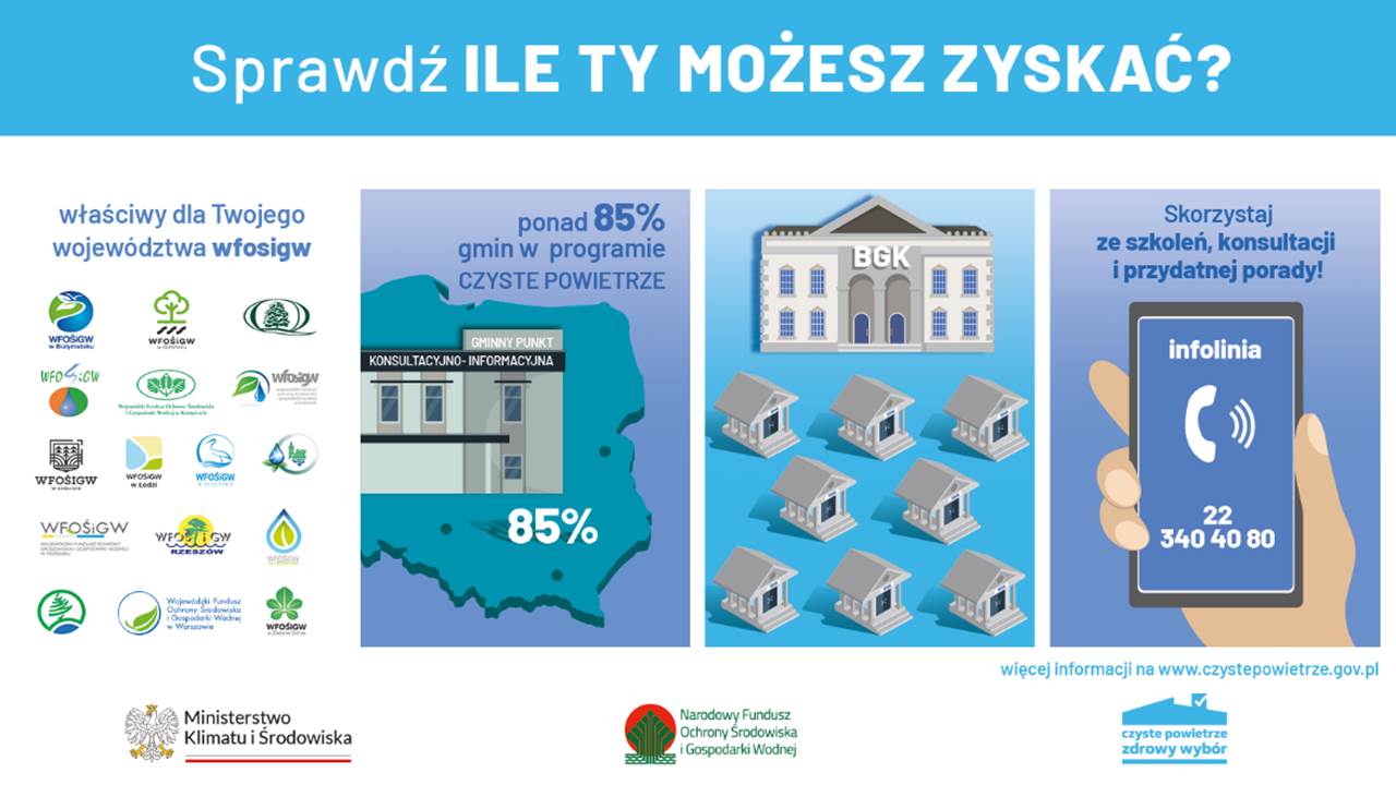 O Program możesz dopytać w naszym Urzędzie Gminy, w punkcie konsultacyjno-informacyjnym. Tutaj otrzymasz wsparcie w przygotowaniu i złożeniu wniosku do programu Czyste Powietrze.