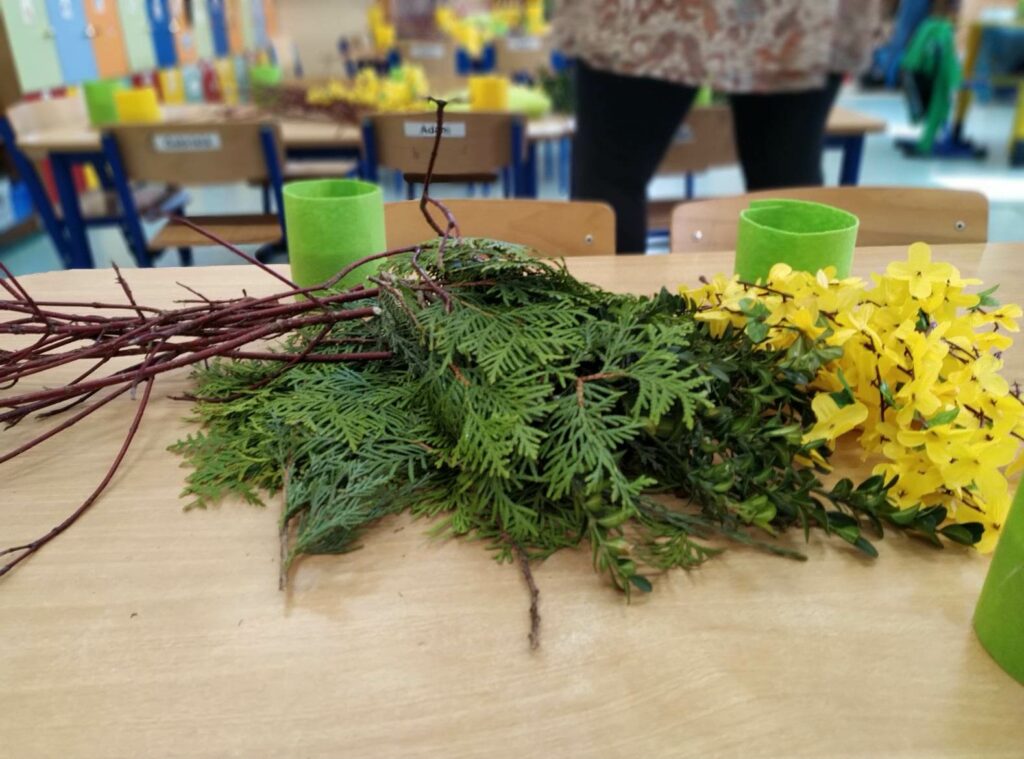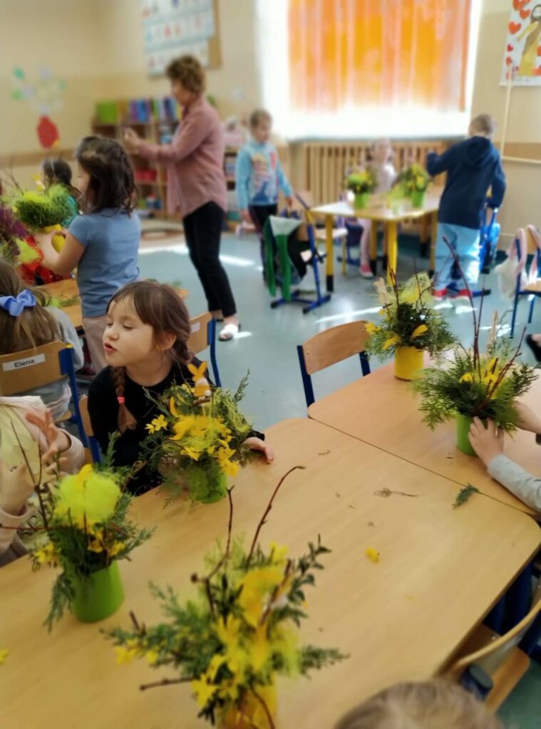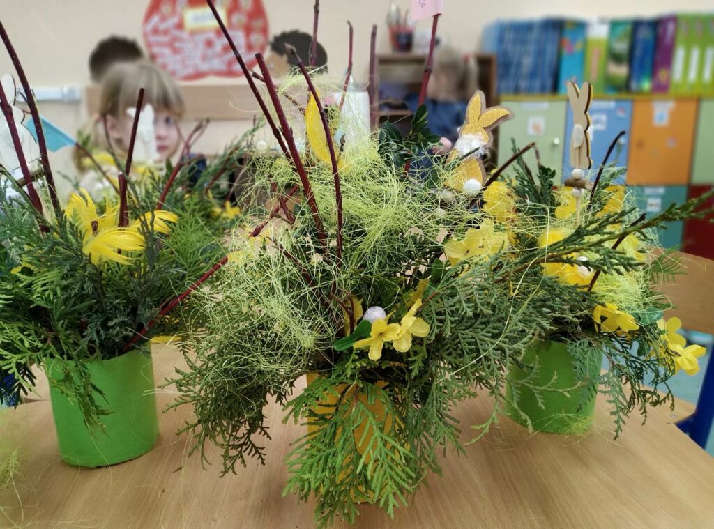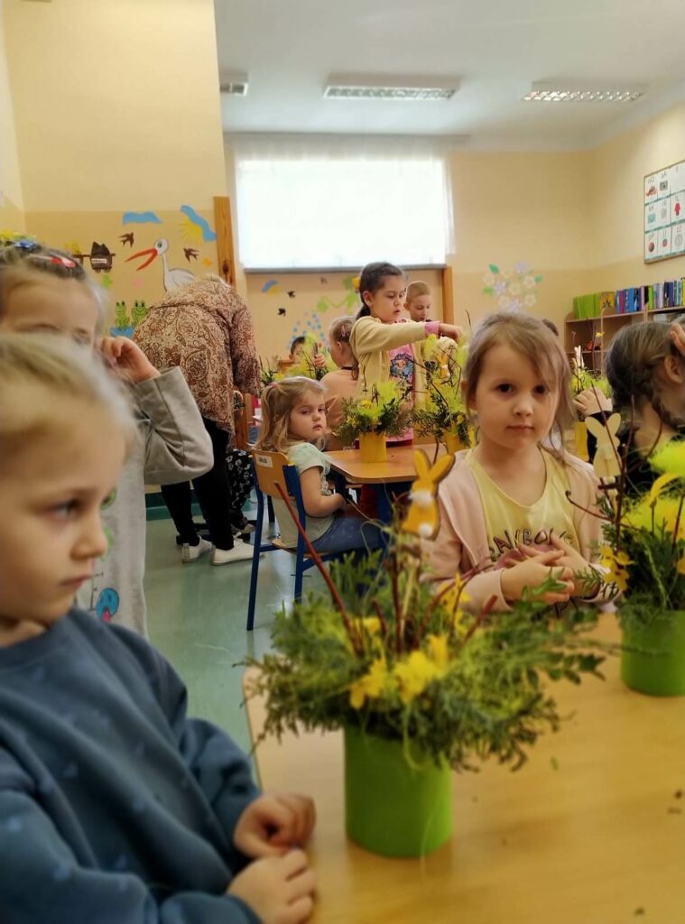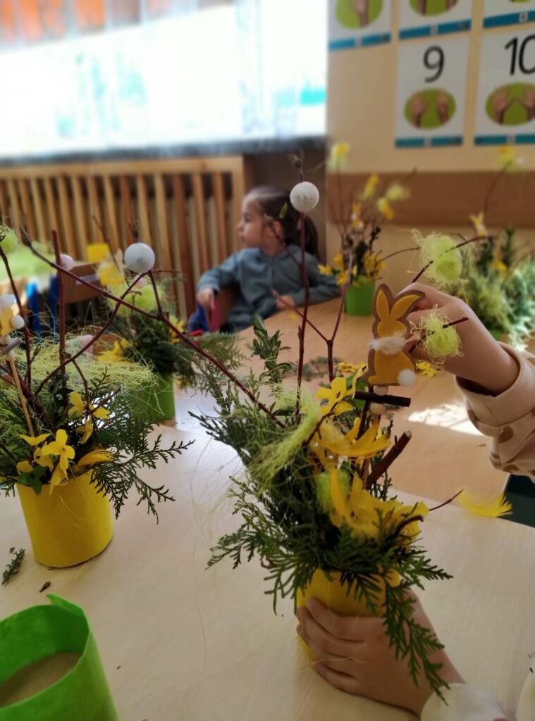 Czwartego kwietnia, w przedświąteczny wtorek Biblioteka Publiczna Gminy Łabunie odwiedziła Przedszkole w Łabuńkach Pierwszych. Dzieci zapoznały się z symbolami świąt wielkanocnych. Powstały ciekawe, radosne stroiki na świąteczny stół.