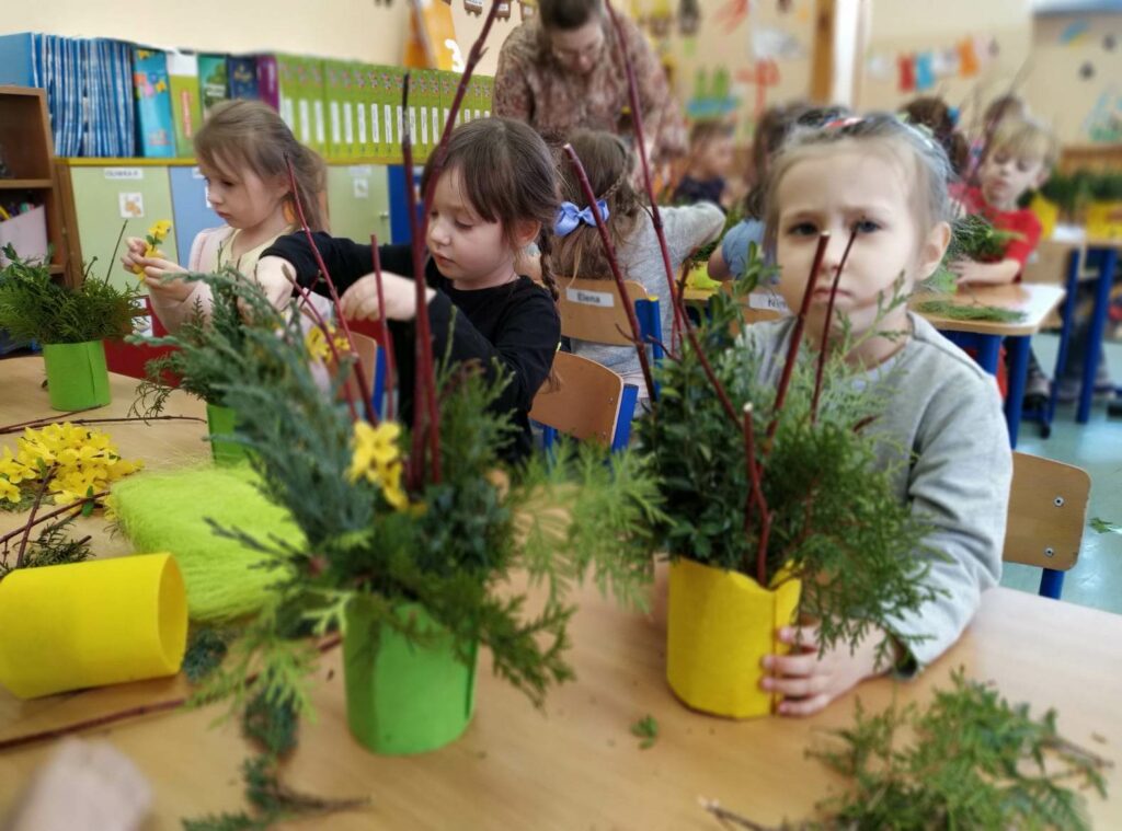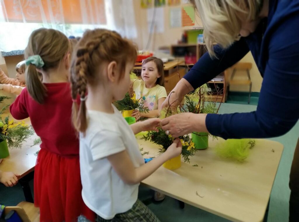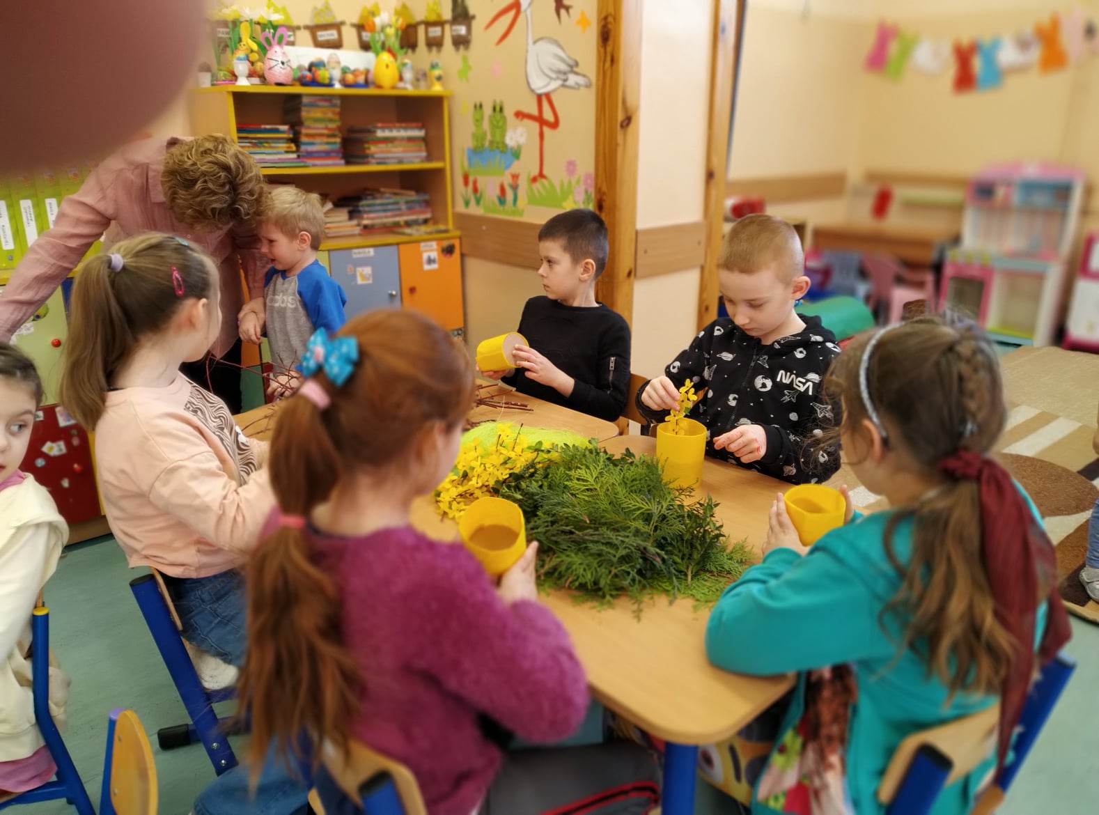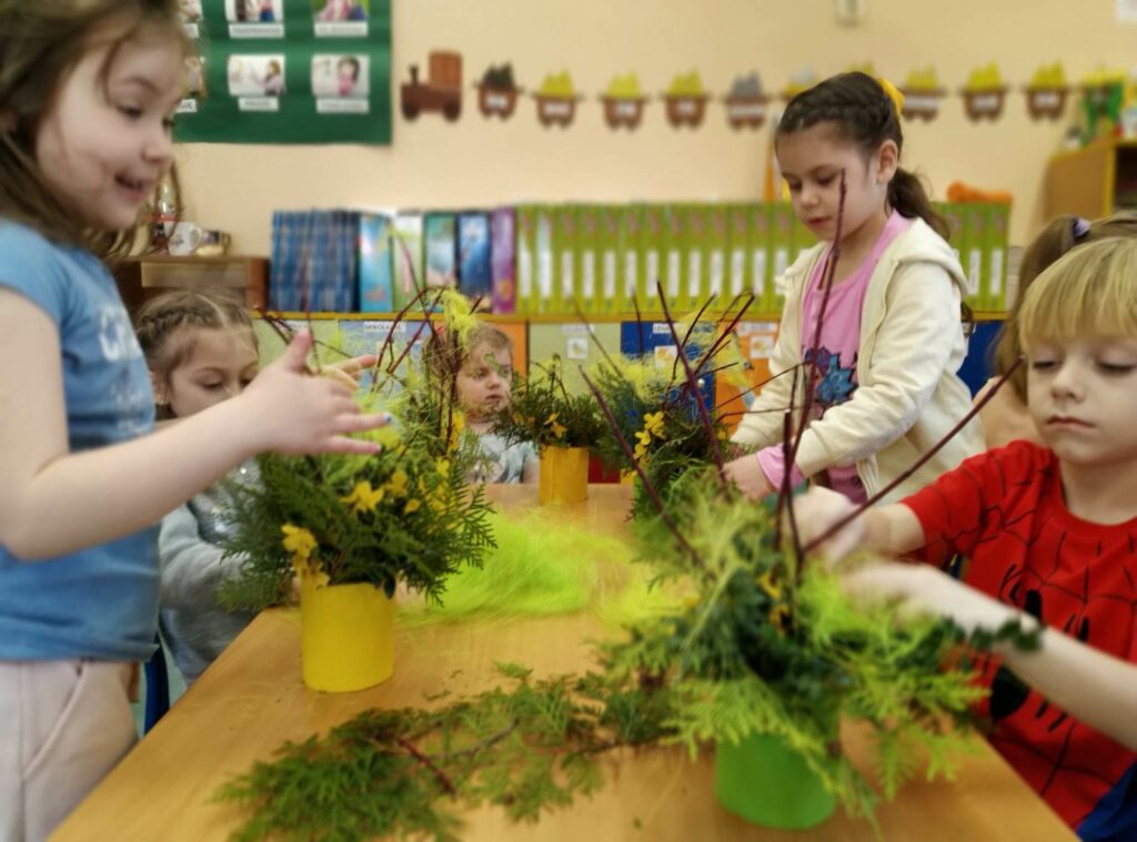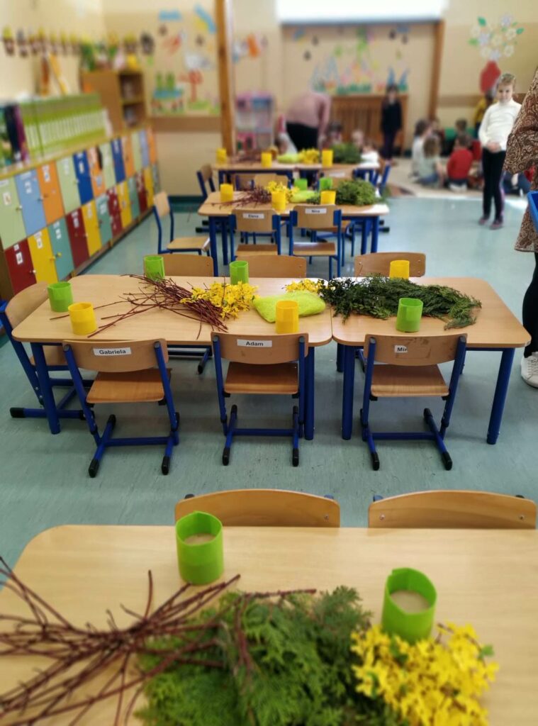Czwartego kwietnia, w przedświąteczny wtorek Biblioteka Publiczna Gminy Łabunie odwiedziła Przedszkole w Łabuńkach Pierwszych. Dzieci zapoznały się z symbolami świąt wielkanocnych. Powstały ciekawe, radosne stroiki na świąteczny stół.