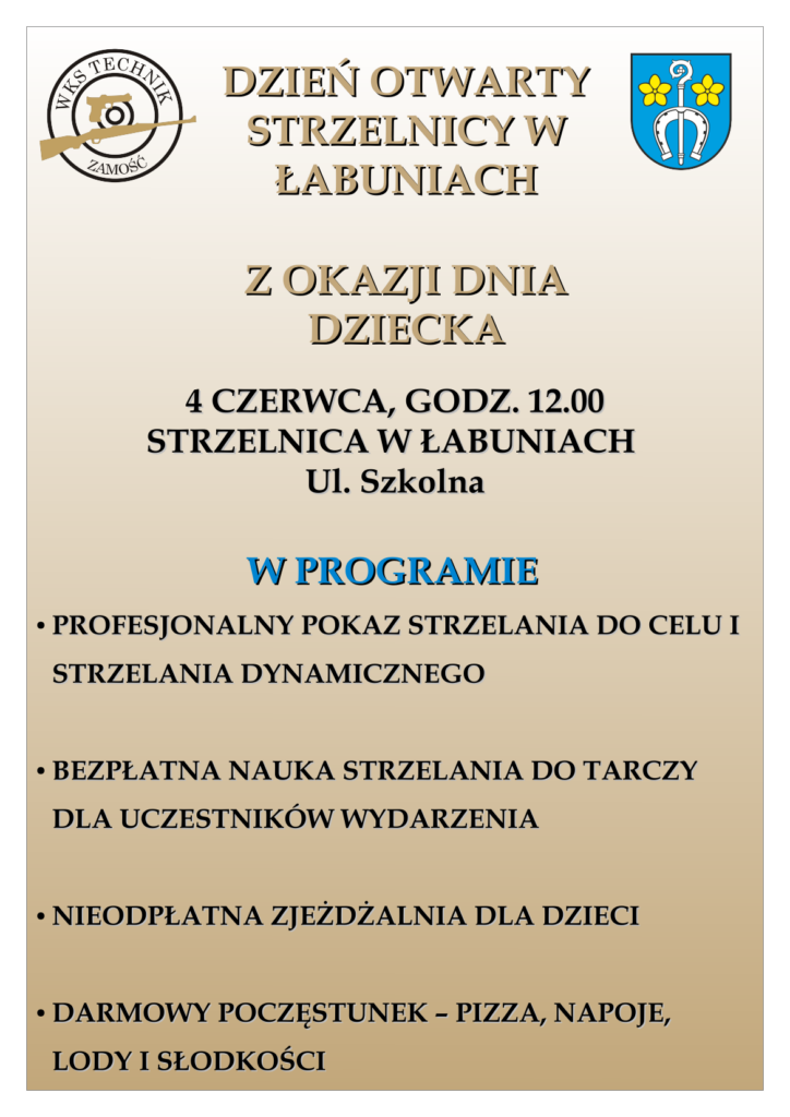 W imieniu organizatorów – Wojskowego Klubu Strzeleckiego “Technik” w Zamościu – zapraszamy na Dzień Otwarty Strzelnicy w Łabuniach z okazji Dnia Dziecka.