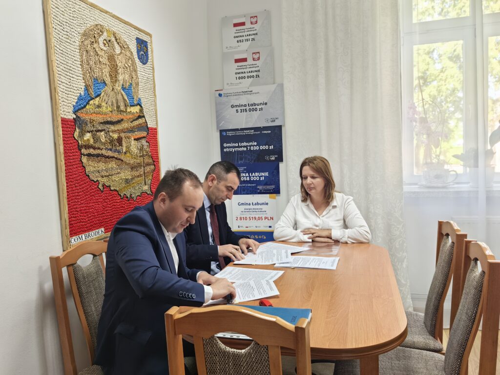 W poniedziałek, 5 czerwca Wójt Gminy Łabunie- Mariusz Kukiełka w obecności Skarbnik Gminy – Agnieszki Niemczuk podpisał z Wykonawcą – Przedsiębiorstwem Robót Drogowych Sp z o.o. umowę na przebudowę drogi.