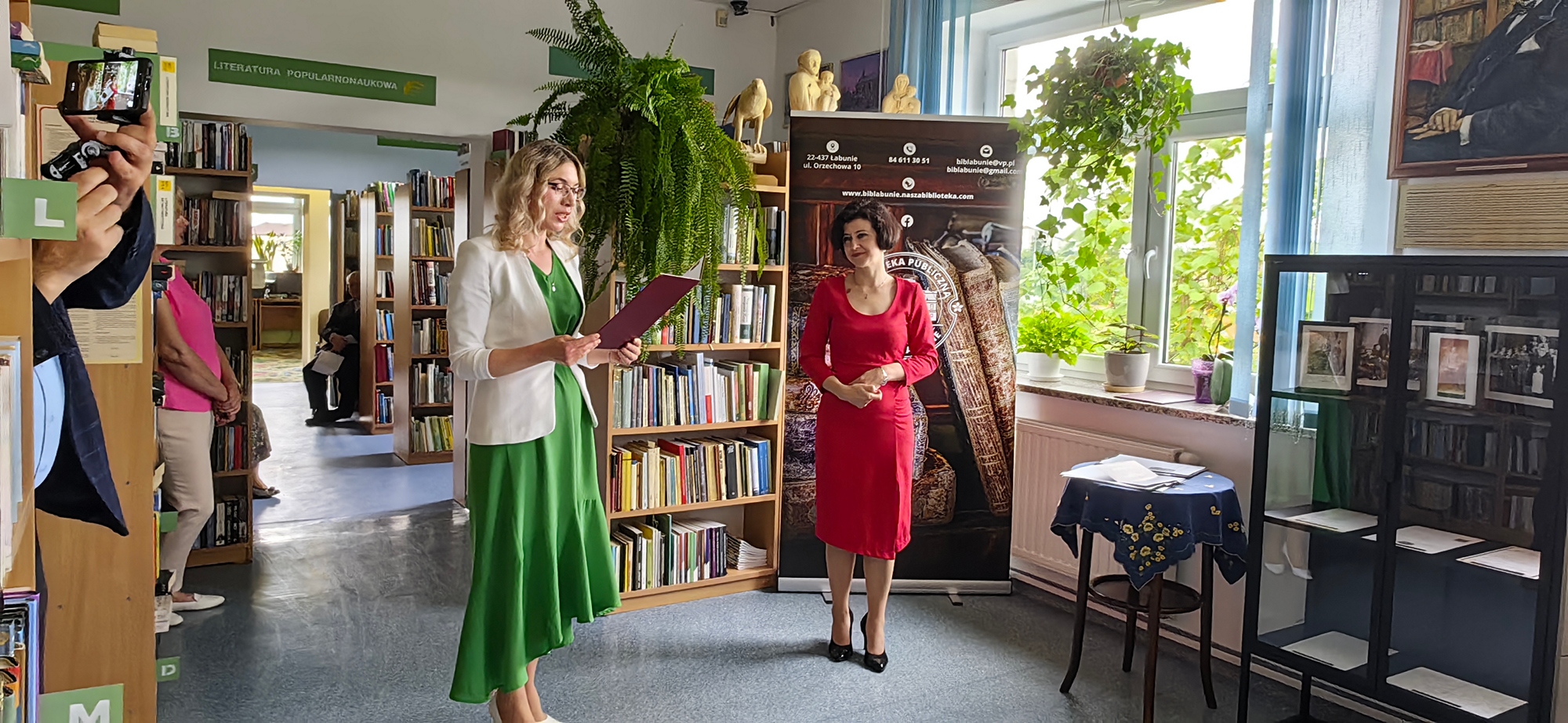 W obchodach uczestniczyła Pani Joanna Mazurek – dyrektor Wydziału Spraw Społecznych i Promocji Powiatu Starostwa Powiatowego w Zamościu, Kierownik Filii Urzędu Marszałkowskiego w Zamościu Pan Mariusz Tłuczek, Wójt Gminy Łabunie – Mariusz Kukiełka, Przewodnicząca Rady Gminy Elżbieta Kuźma, Pan Tadeusz Sławecki – Dyrektor Wojewódzkiej Biblioteki Publicznej im. Hieronima Łopacińskiego w Lublinie, Panie Halina Zielińska i Kamila Niemczuk z Książnicy Zamojskiej, środowisko bibliotekarzy z bibliotek powiatu zamojskiego, Państwo Dorota i Leszek Firkowie, sołtysi i radni gminy Łabunie, Pani Anna Boć-Bil dyrektor Domu dla Matek z Małoletnimi Dziećmi i Kobiet w Ciąży w Łabuniach. Anna Syska Kierownik GOPS w Łabuniach Justyna Żuk kierownik COM w Brudku, a także Panie z Kół Gospodyń Wielskich terenu Gminy Łabunie, emerytowani pracownicy i kierownicy biblioteki w tym wieloletni kierownik Bogdan Szykuła, a także czytelnicy, sympatycy i miłośnicy książki i biblioteki.