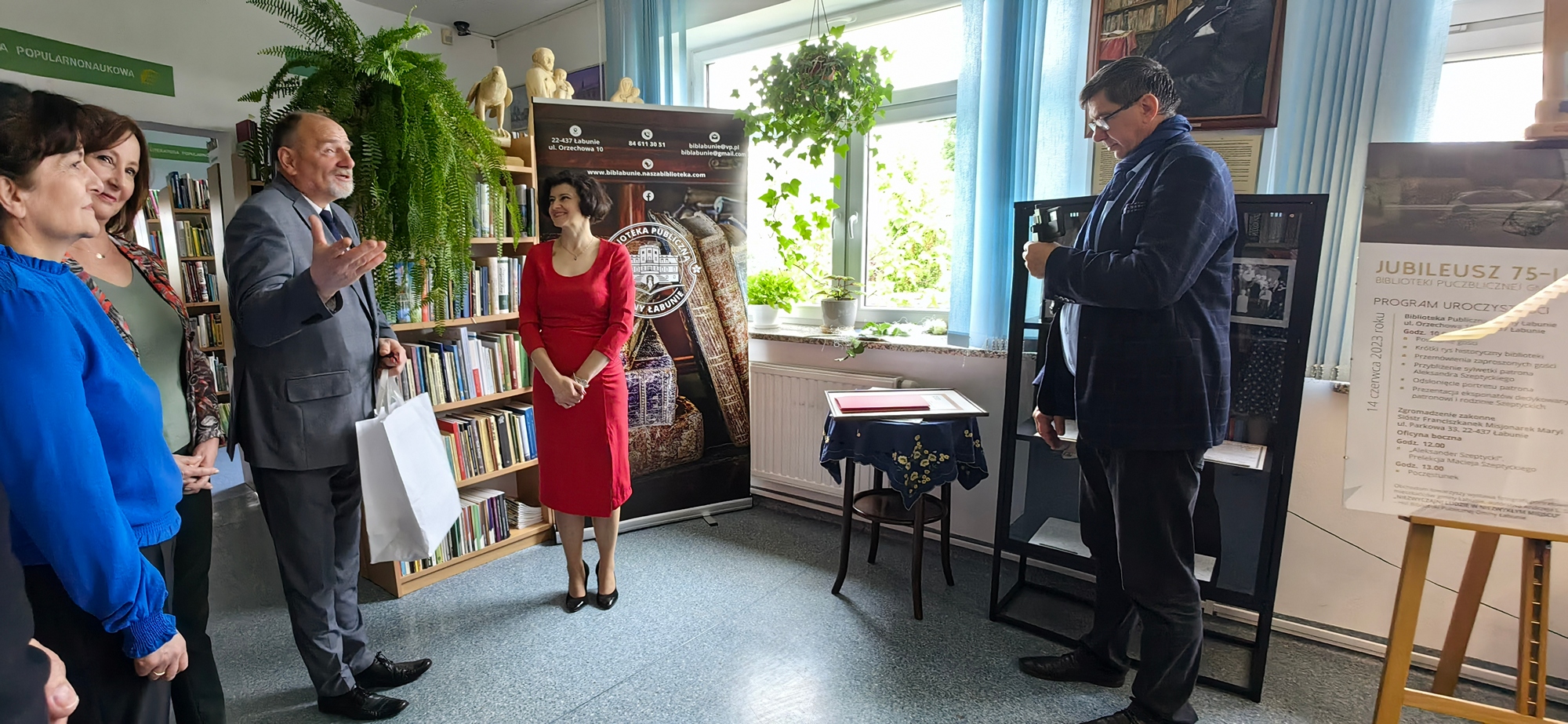 Były przemówienia, podziękowania i wspomnienia. W bibliotece eksponowana jest gablota z fotografiami patrona i reprodukcjami dokumentów dotyczących jego życia, a także portret namalowany przez Leszka Firka na okoliczność nadania placówce imienia. Można także obejrzeć wystawkę książek poświęconych rodowi Szeptyckich. Ponadto, uroczystości towarzyszyła wystawa fotografii portretowej mieszkańców Gminy Łabunie autorstwa Andrzeja Szumowskiego.