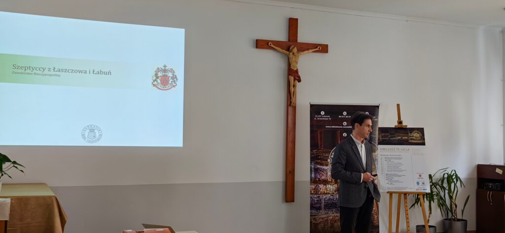 Dalsza część uroczystości odbywała się w zespole pałacowo-parkowym Zgromadzenia SFMM w Łabuniach, gdzie Maciej Szeptycki wygłosił prelekcję poświęconą patronowi Biblioteki.