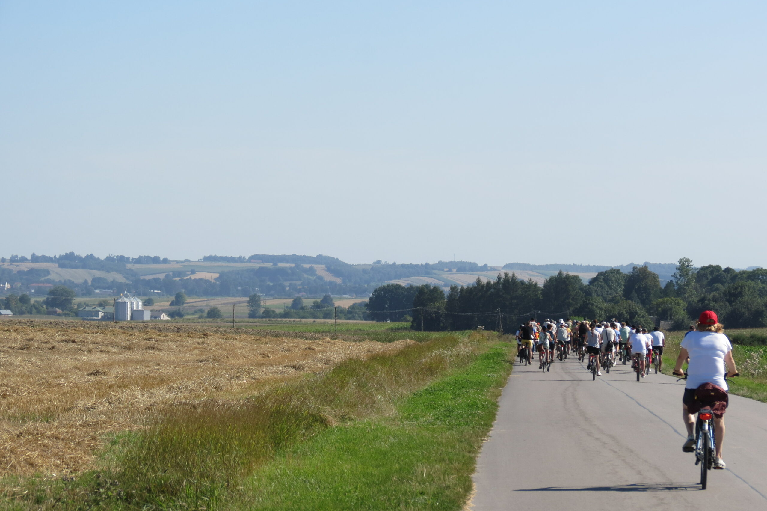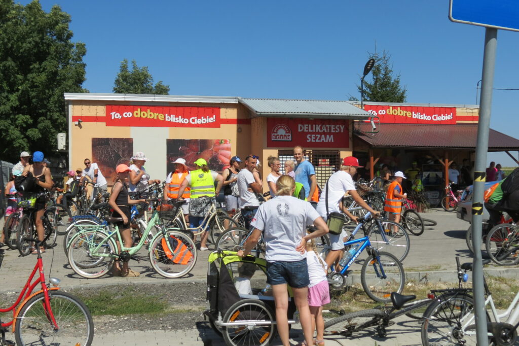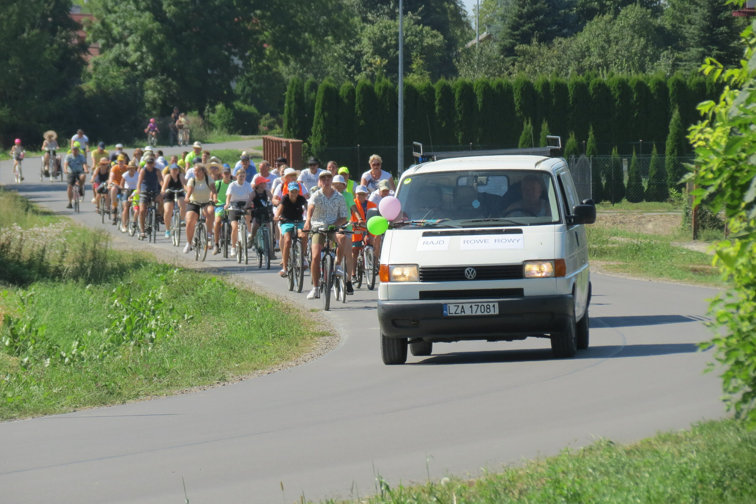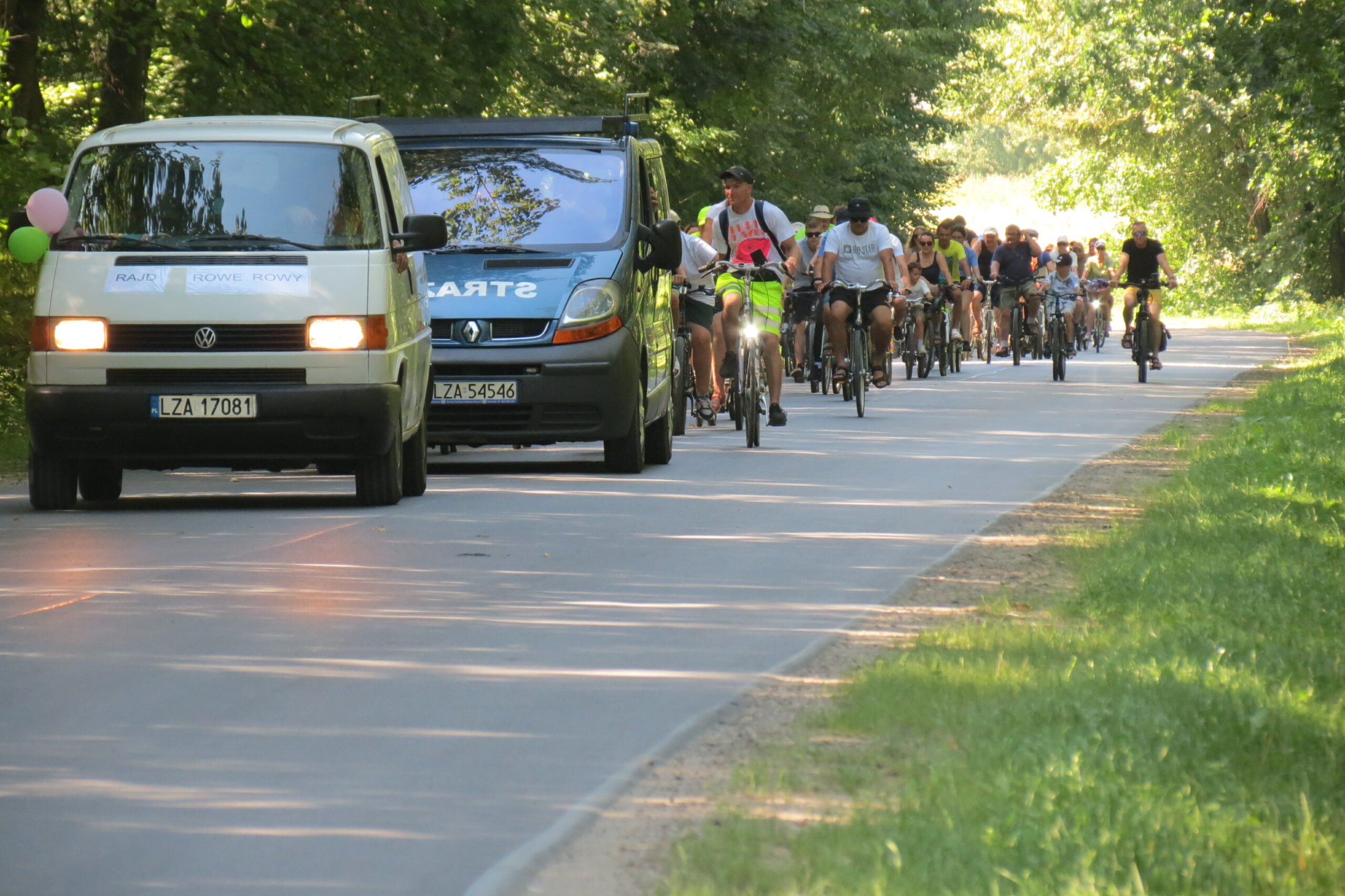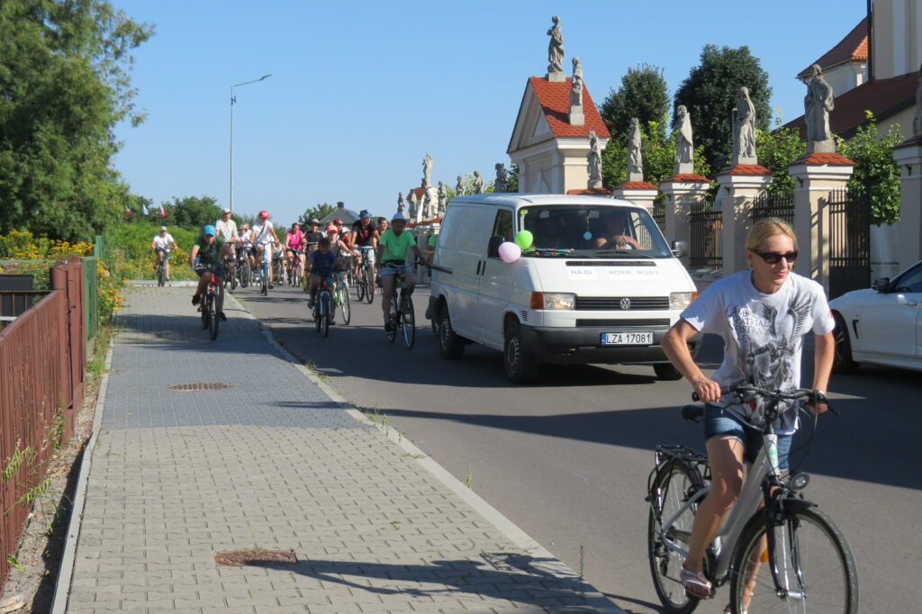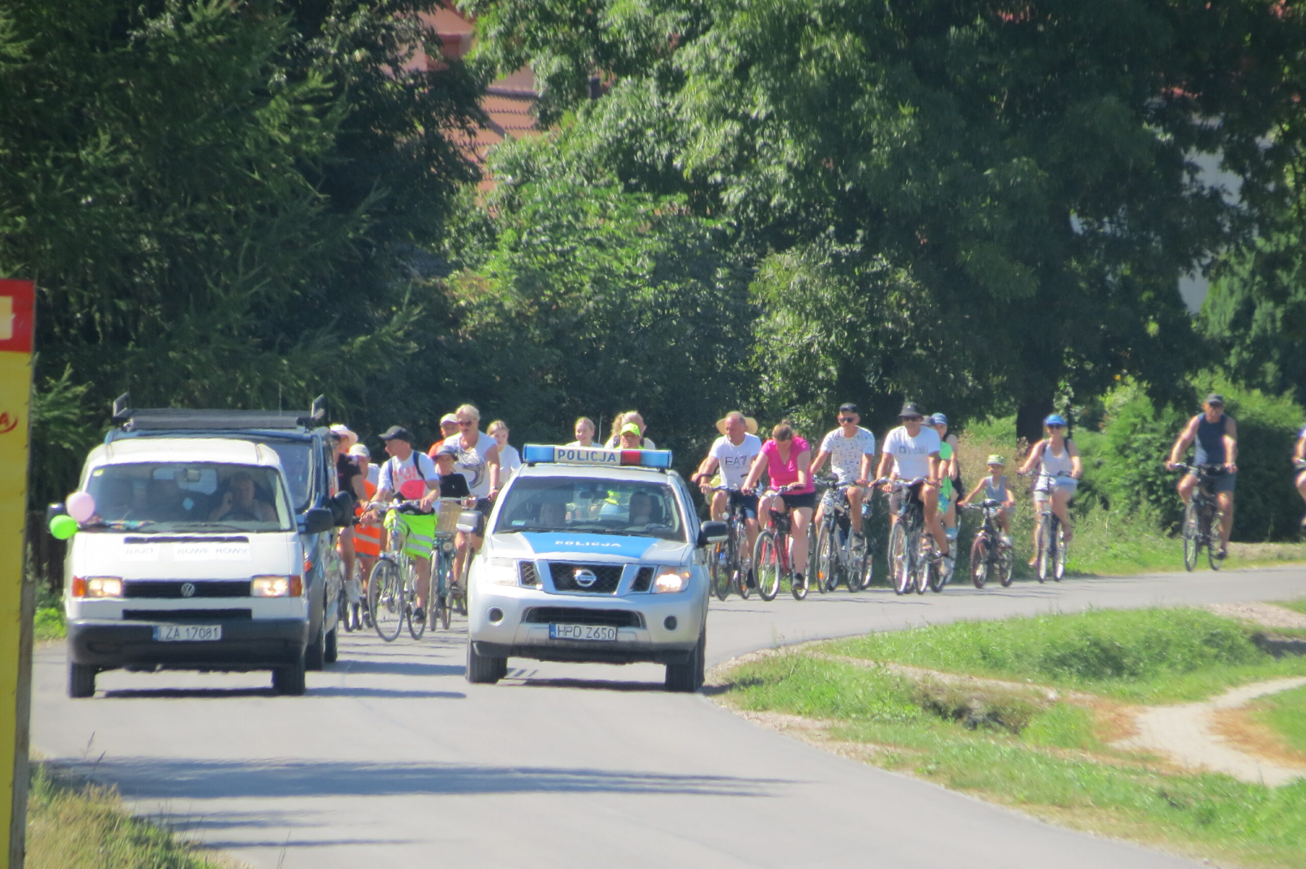 Spod remizy OSP w Łabuńkach Pierwszych pojechaliśmy na Barchaczów, Bródek w kierunku Pomnika Chwały Kawalerii i Artylerii Konnej w Wolicy Śniatyckiej. Tu uczestnicy rajdu mieli dłuższy odpoczynek, a także możliwość zobaczenia pomnika i zrobienia pamiątkowych zdjęć. Potem udaliśmy się w kierunku Łabuń, a następnie Wierzbia. Metę zaplanowano w parku przy Hospicjum Santa Galla w Łabuńkach Pierwszych. Tu na uczestników rajdu czekał poczęstunek przygotowany przez Koło Gospodyń Wiejskich w Łabuńkach Pierwszych – prawie 2000 ręcznie ulepionych pierogów, kiełbasa z ogniska, pączki i napoje. Po odpoczynku odbyło się losowanie nagród- dwóch rowerów w kategorii starsi i młodsi oraz gadżetów rowerowych. Główne nagrody trafiły do Pana Sławomira Kołodziejczyka z Łabuniek Pierwszych i do Michalinki Bobczuk z Łabuniek Drugich. Nagrody wręczał Wójt Gminy Łabunie – Mariusz Kukiełka.
