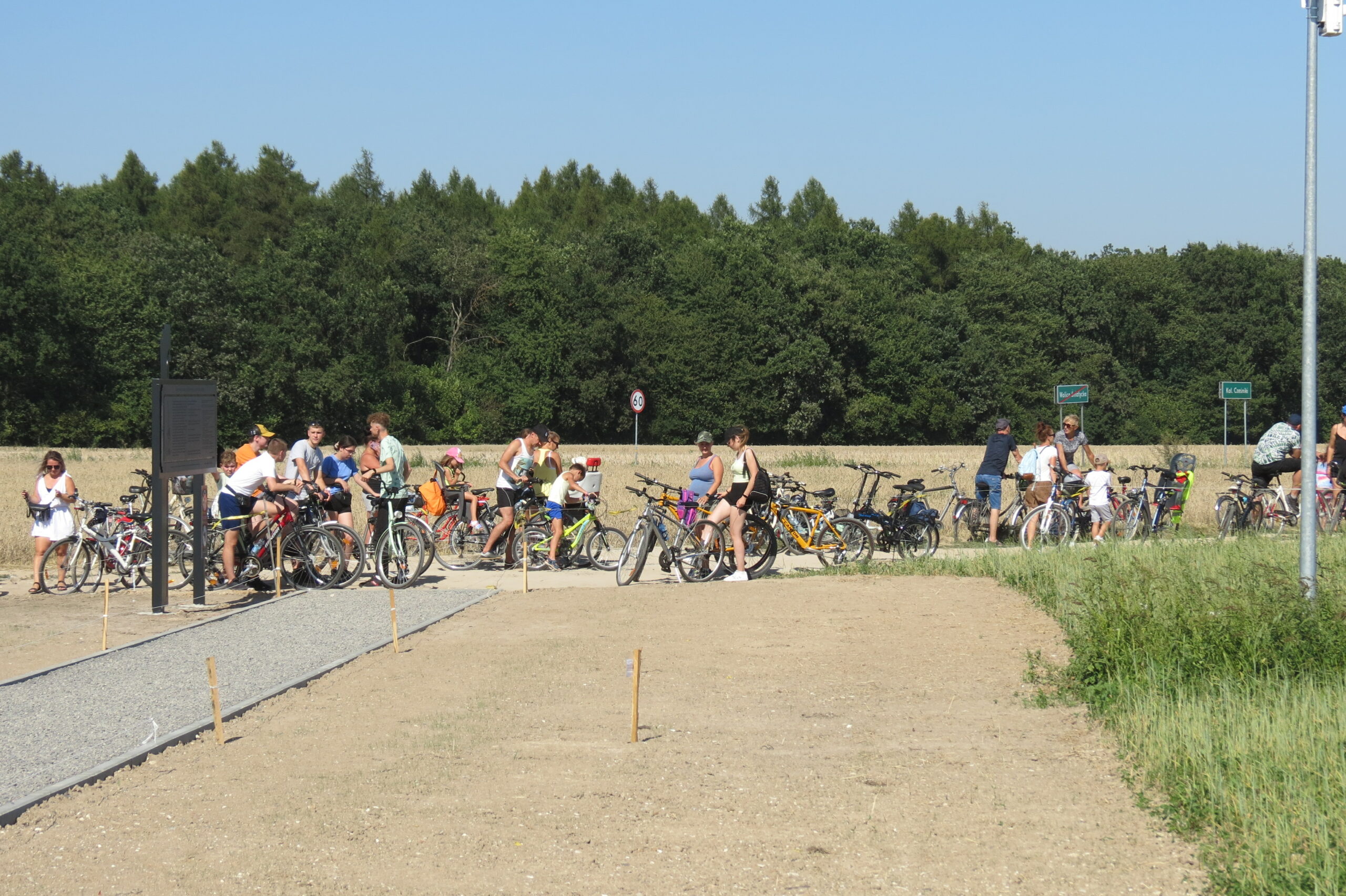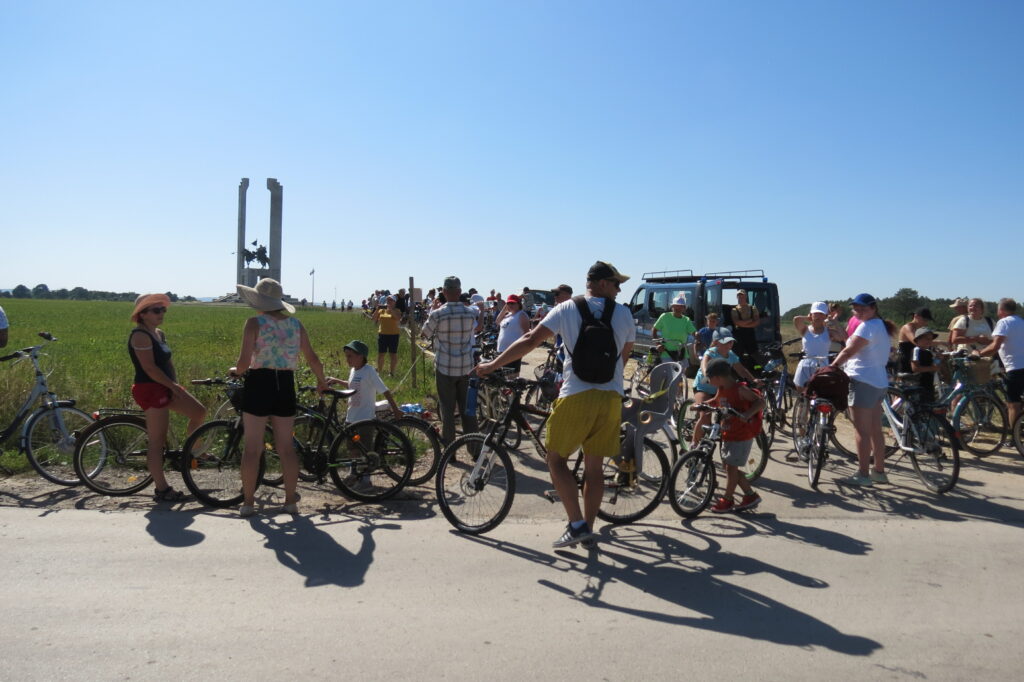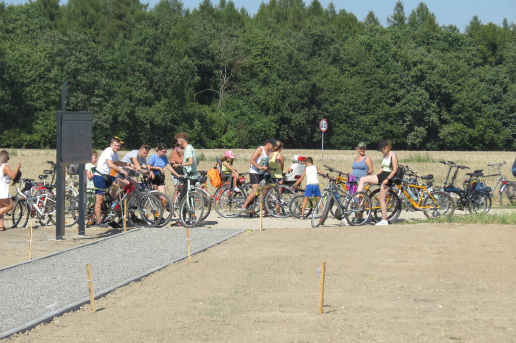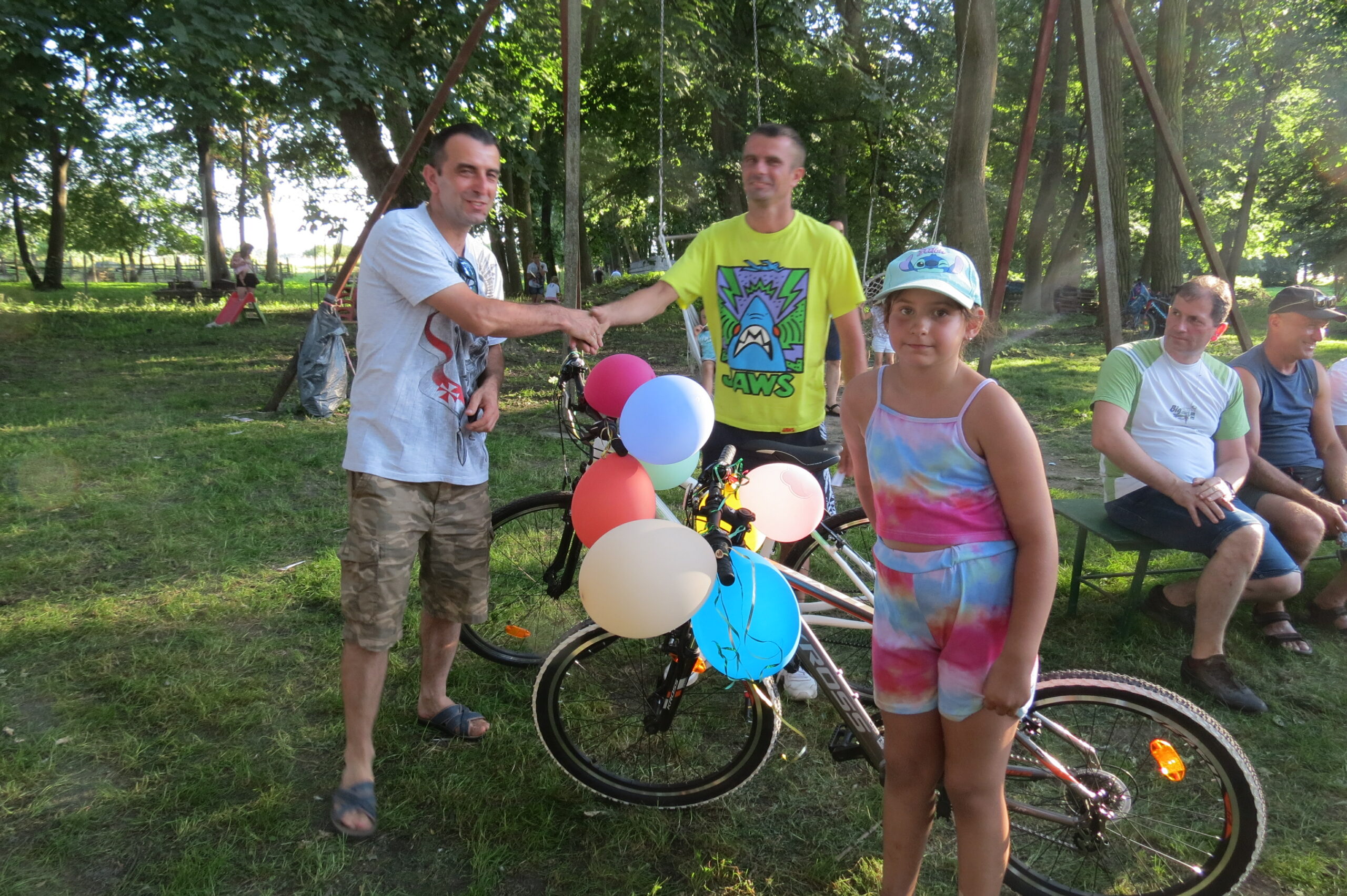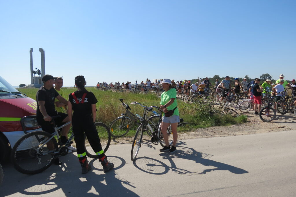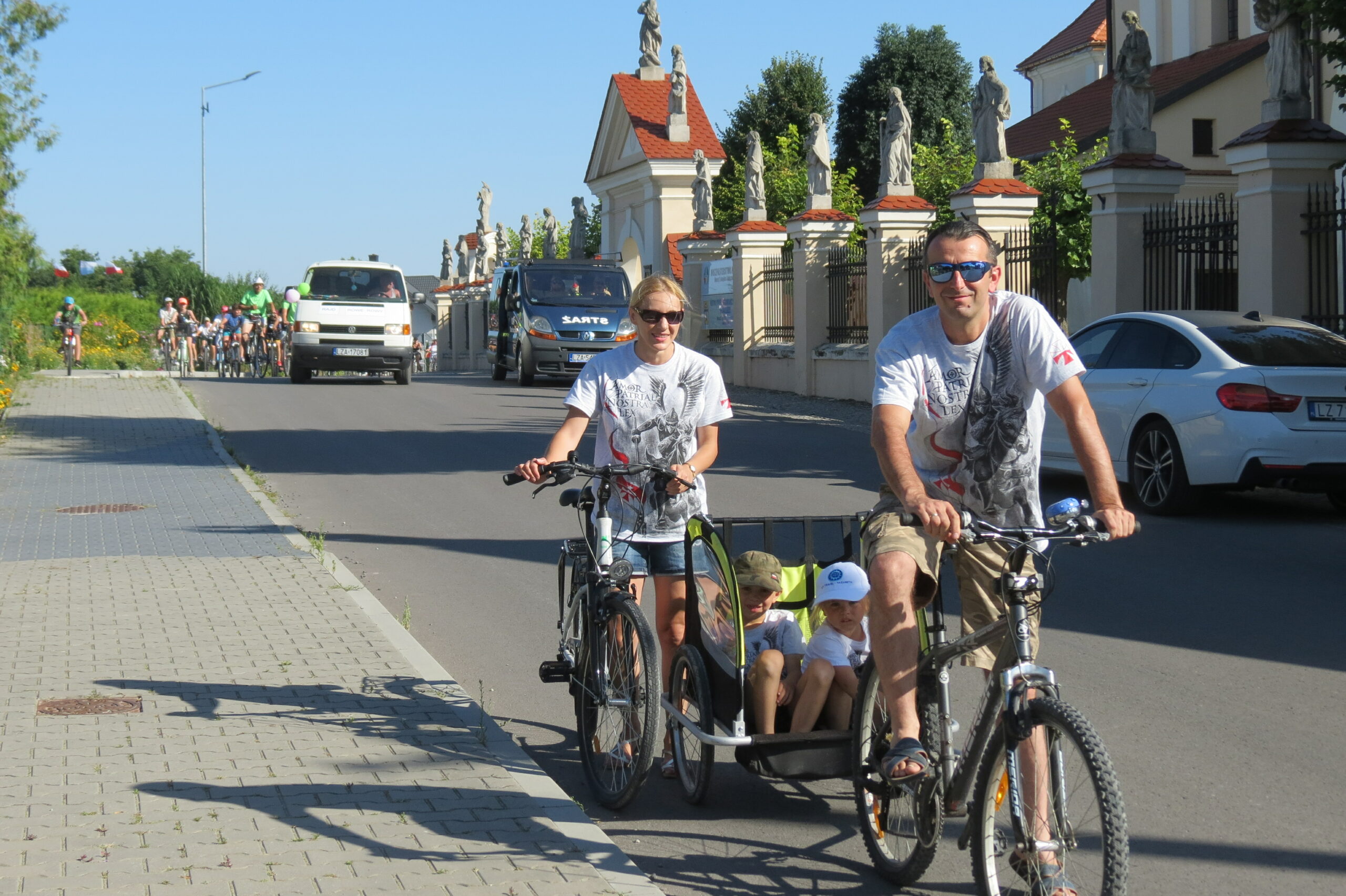 Spod remizy OSP w Łabuńkach Pierwszych pojechaliśmy na Barchaczów, Bródek w kierunku Pomnika Chwały Kawalerii i Artylerii Konnej w Wolicy Śniatyckiej. Tu uczestnicy rajdu mieli dłuższy odpoczynek, a także możliwość zobaczenia pomnika i zrobienia pamiątkowych zdjęć. Potem udaliśmy się w kierunku Łabuń, a następnie Wierzbia. Metę zaplanowano w parku przy Hospicjum Santa Galla w Łabuńkach Pierwszych. Tu na uczestników rajdu czekał poczęstunek przygotowany przez Koło Gospodyń Wiejskich w Łabuńkach Pierwszych – prawie 2000 ręcznie ulepionych pierogów, kiełbasa z ogniska, pączki i napoje. Po odpoczynku odbyło się losowanie nagród- dwóch rowerów w kategorii starsi i młodsi oraz gadżetów rowerowych. Główne nagrody trafiły do Pana Sławomira Kołodziejczyka z Łabuniek Pierwszych i do Michalinki Bobczuk z Łabuniek Drugich. Nagrody wręczał Wójt Gminy Łabunie – Mariusz Kukiełka.