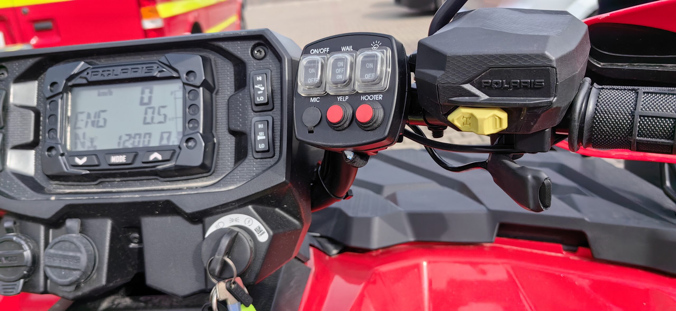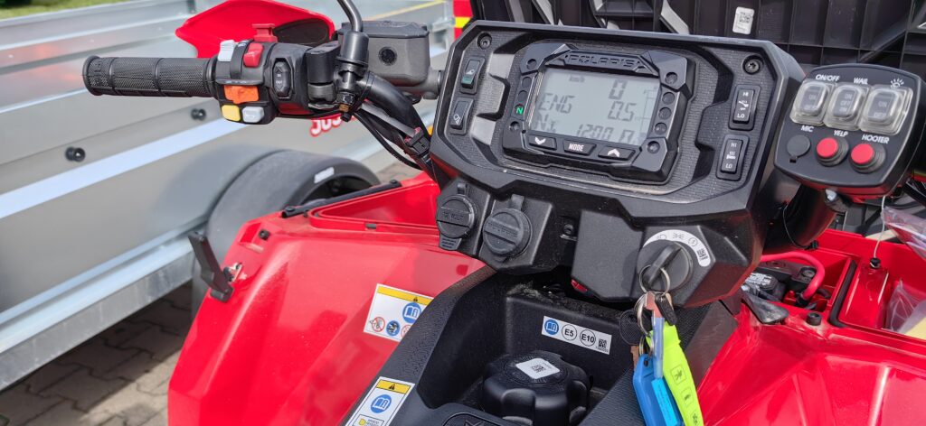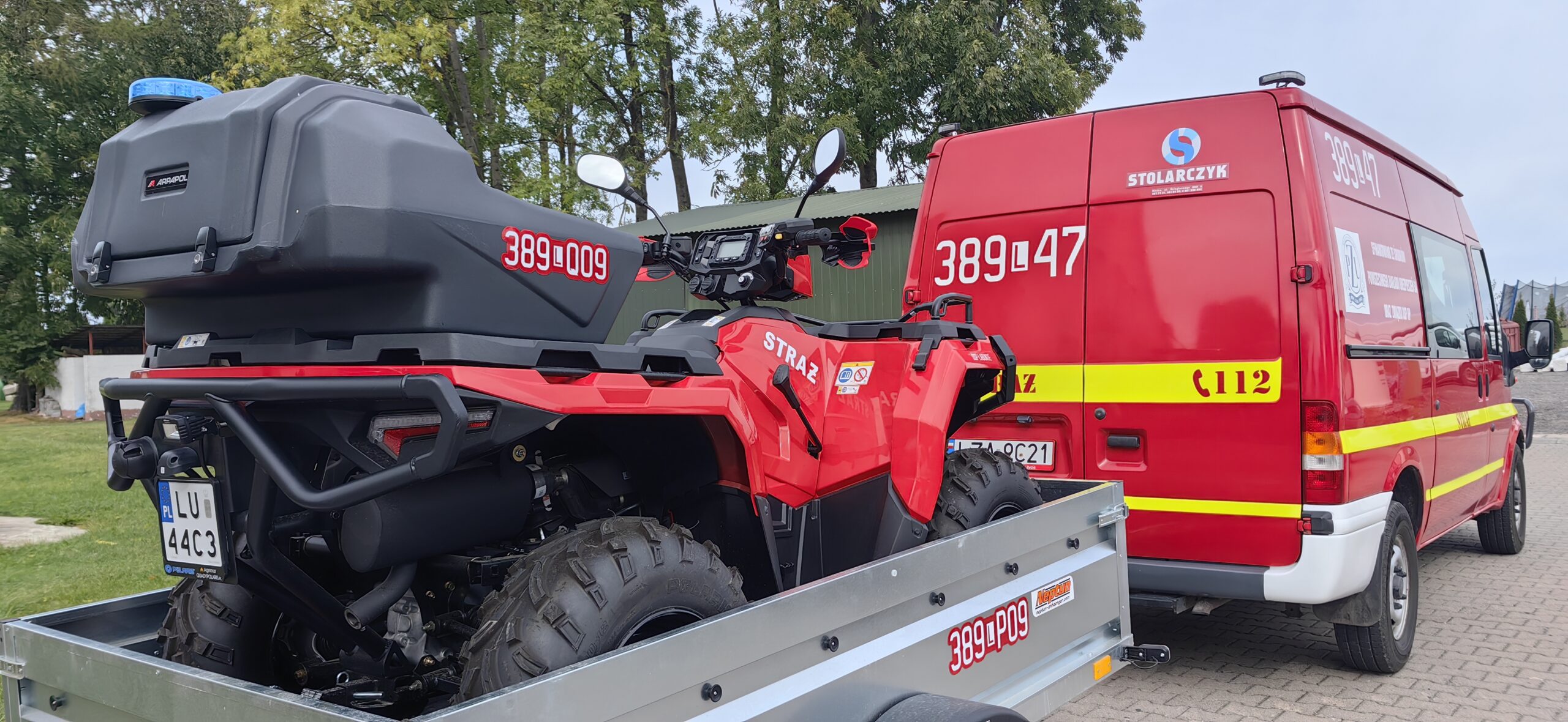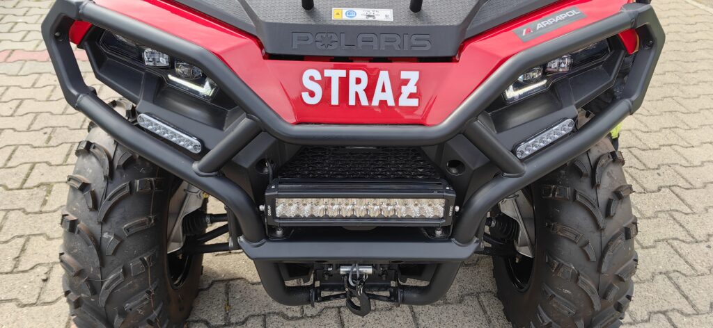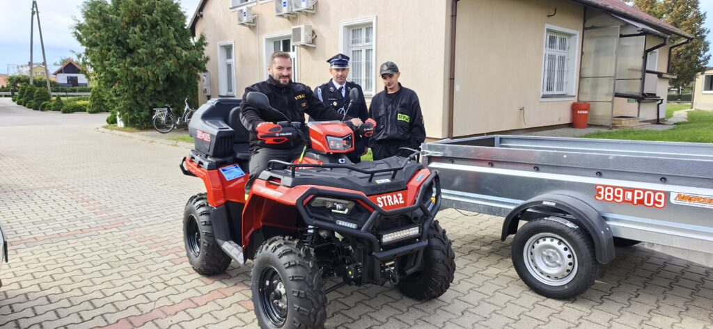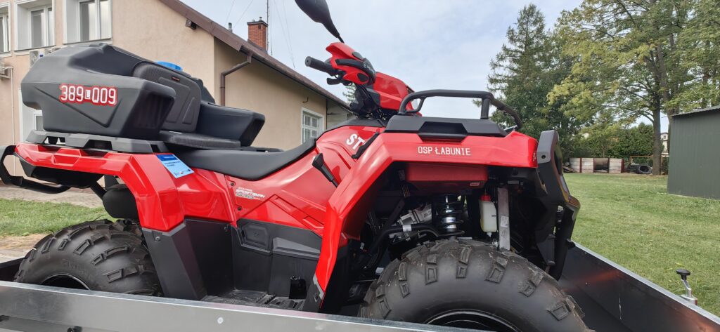 Silnik benzynowy o mocy 44 KM, automatyczna skrzynia biegów z biegiem terenowym, do tego przyczepka i doczepiany pług do odśnieżania – taki quad trafił w ręce strażaków z Łabuń.
