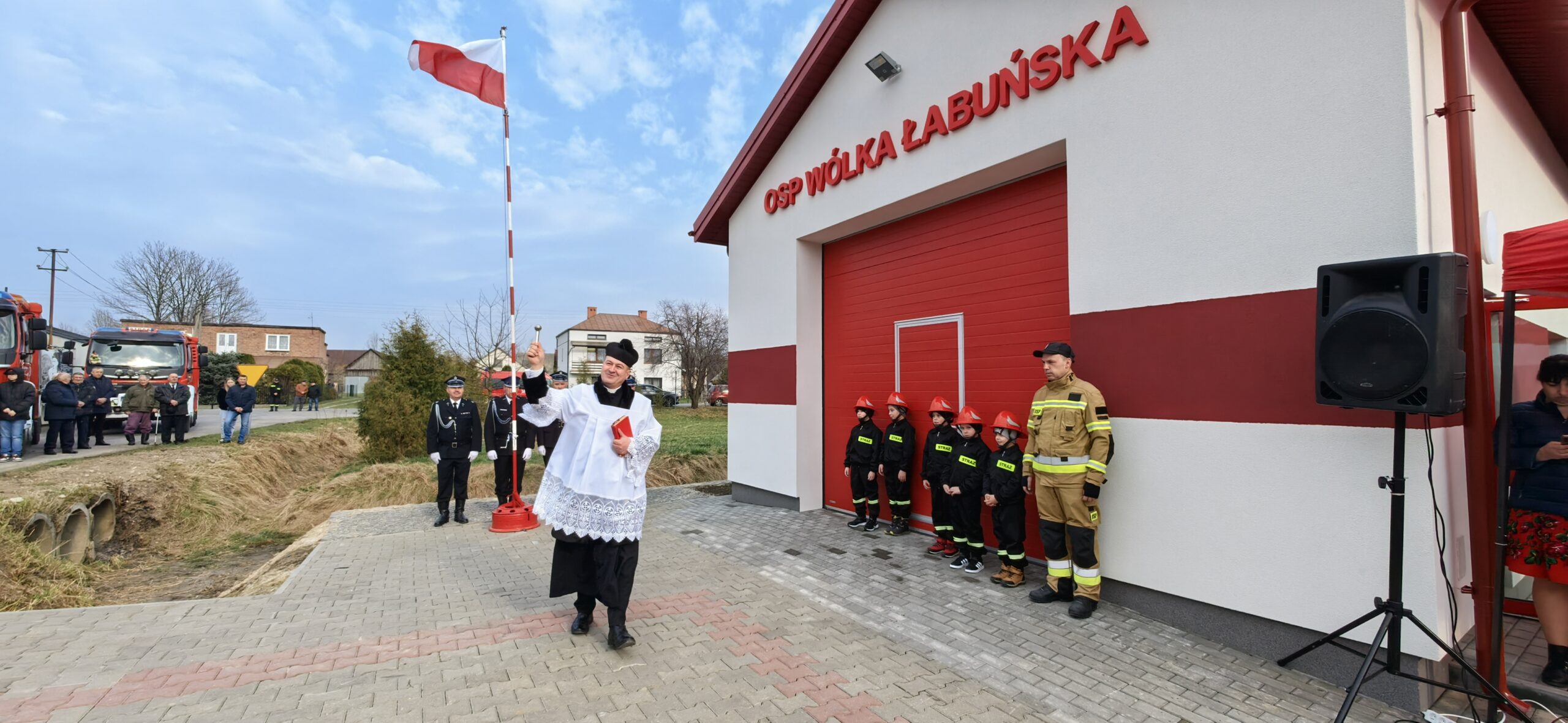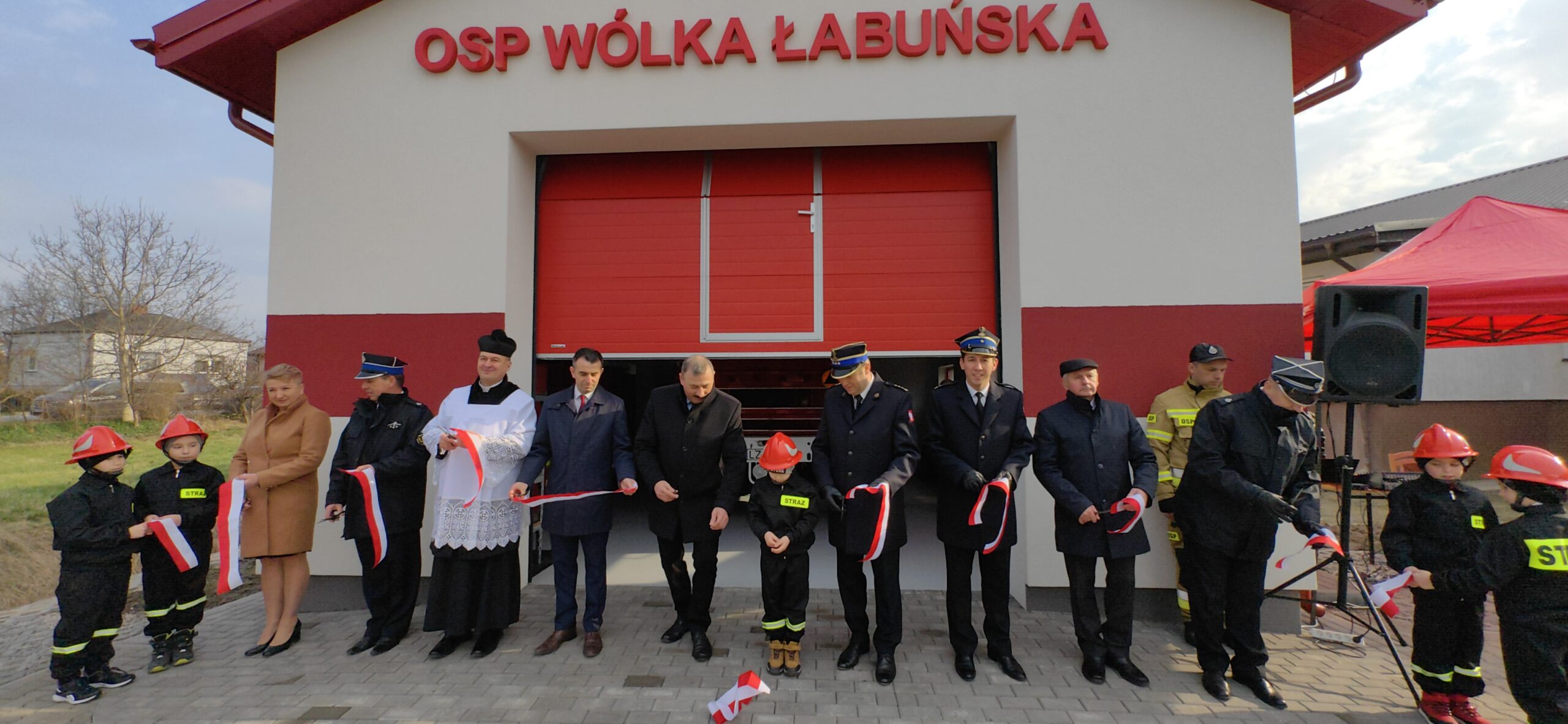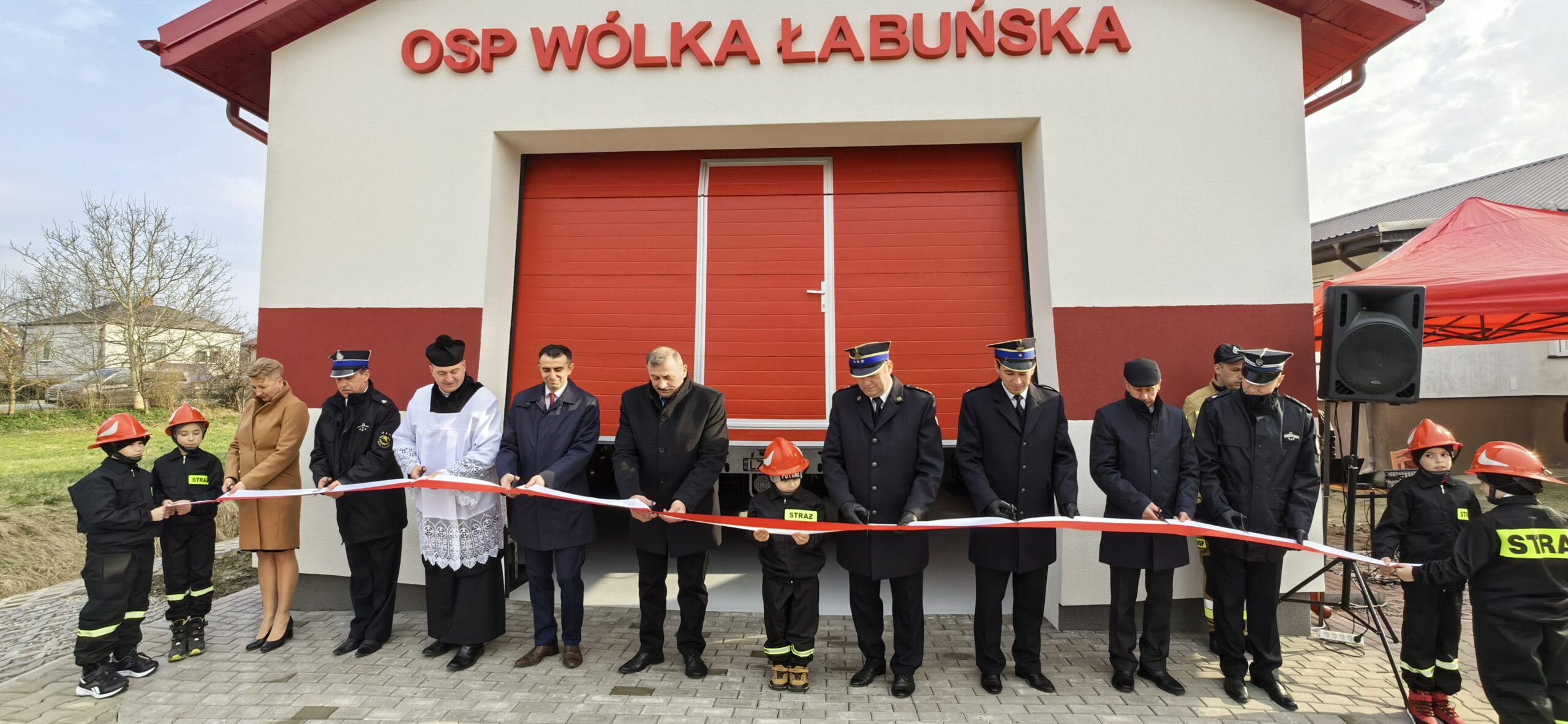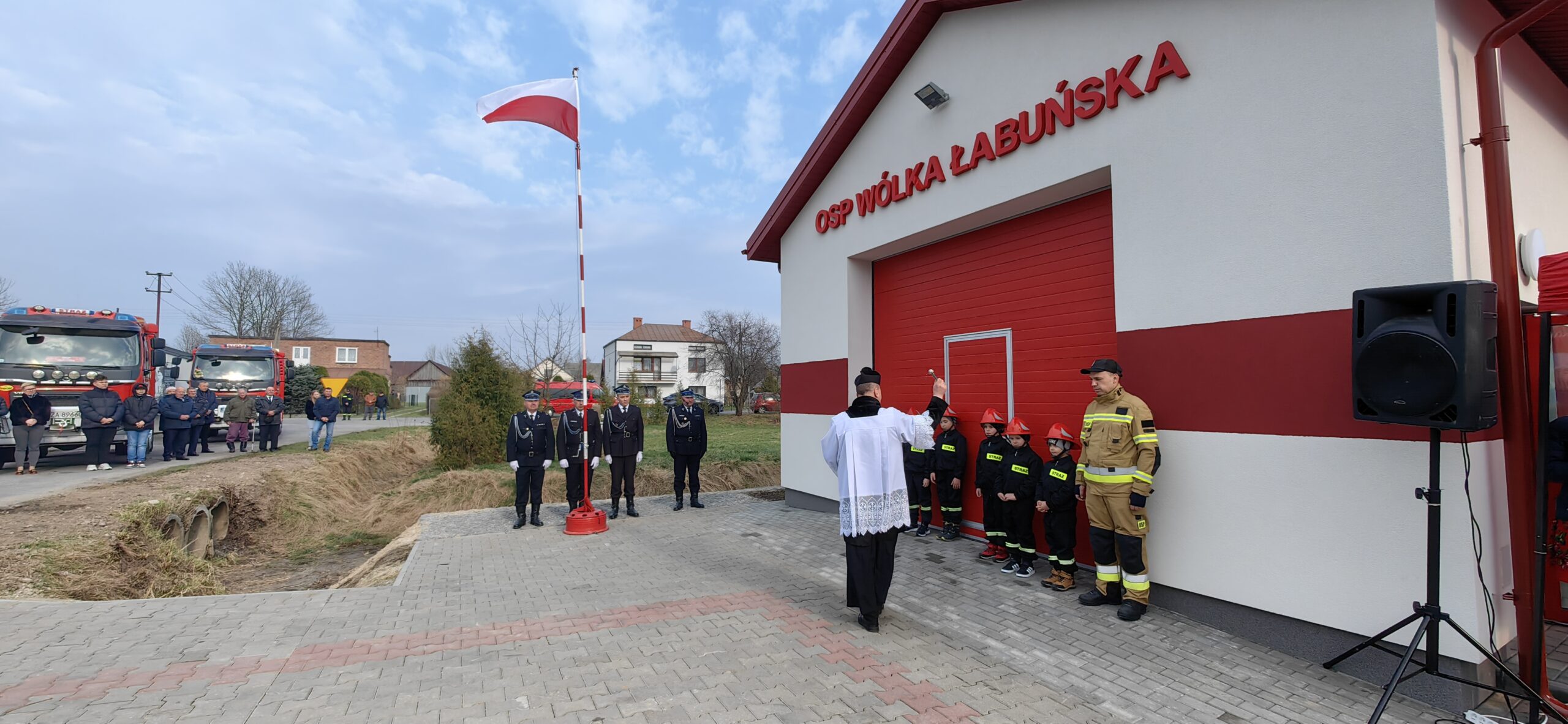 Uroczystość otworzył Wójt Gminy Łabunie – Mariusz Kukiełka, który powitał zaproszonych gości. Następnie nowy obiekt został poświęcony przez proboszcza łabuńskiej parafii – ks. Andrzeja Łuszcza. Było również symboliczne przecięcie wstęgi przez: Wójta Gminy Łabunie – Mariusza Kukiełkę, Radnego Sejmiku Województwa Lubelskiego – Krzysztofa Gałaszkiewicza, Przewodniczącą Rady Gminy Łabunie – Elżbietę Kuźmę, V-ce Przewodniczącego Rady Powiatu Zamojskiego – Antoniego Skurę, Komendanta Miejskiego Państwowej Straży Pożarnej w Zamościu – mł. bryg. Przemysława Ilczuka, Wiceprezesa Oddziału Powiatowego ZOSP RP w Zamościu – st. bryg. Jacka Sobczyńskiego, Prezesa Zarządu Gminnego ZOSP RP w Łabuniach – Mariusza Braneckiego, Prezesa OSP w Wólce Łabuńskiej – dh Zbigniewa Żuka, Sołtysa Wólki Łabuńskiej – Piotra Głazowskiego oraz Proboszcza Parafii Rzymskokatolickiej pw. M. Bożej Szkaplerznej i Św. Dominika w Łabuniach – ks. Andrzeja Łuszcza.