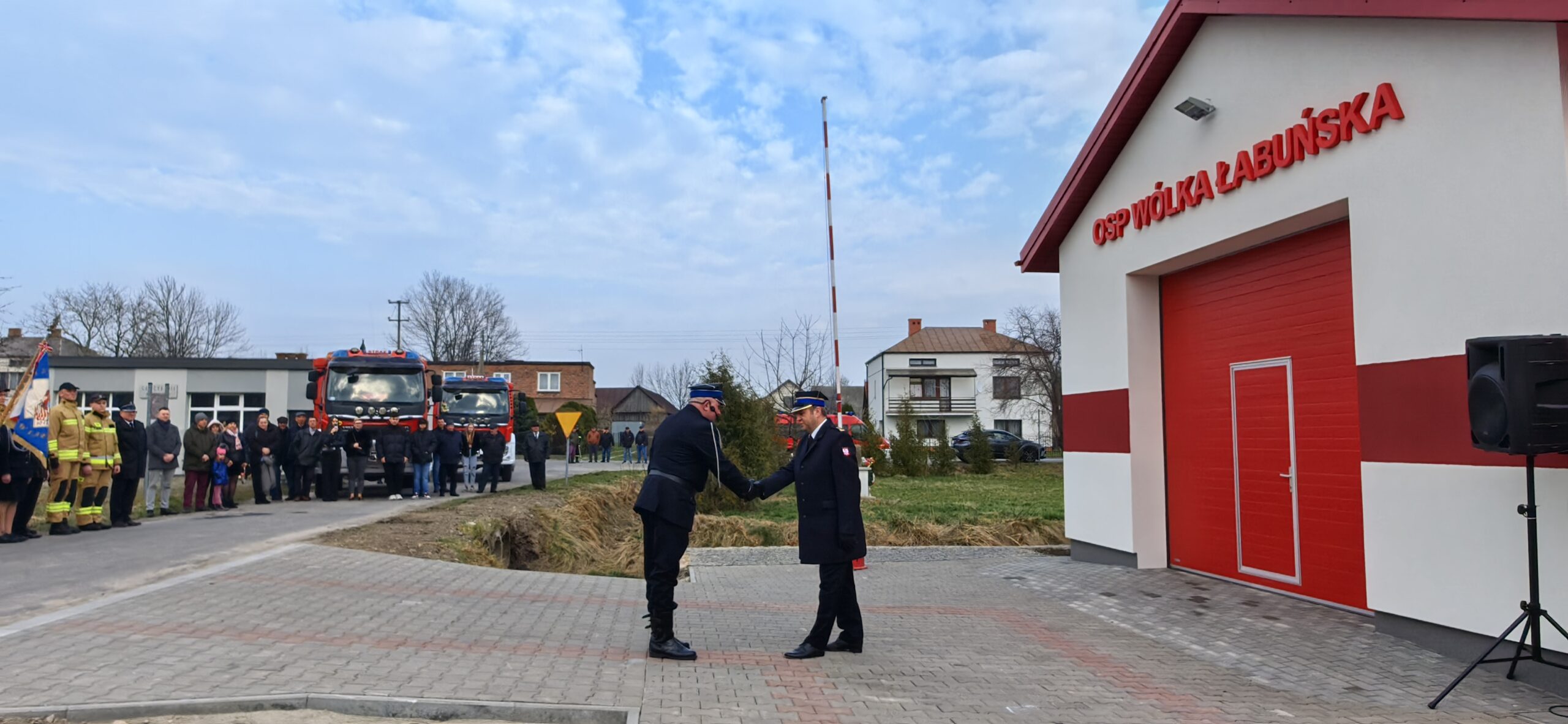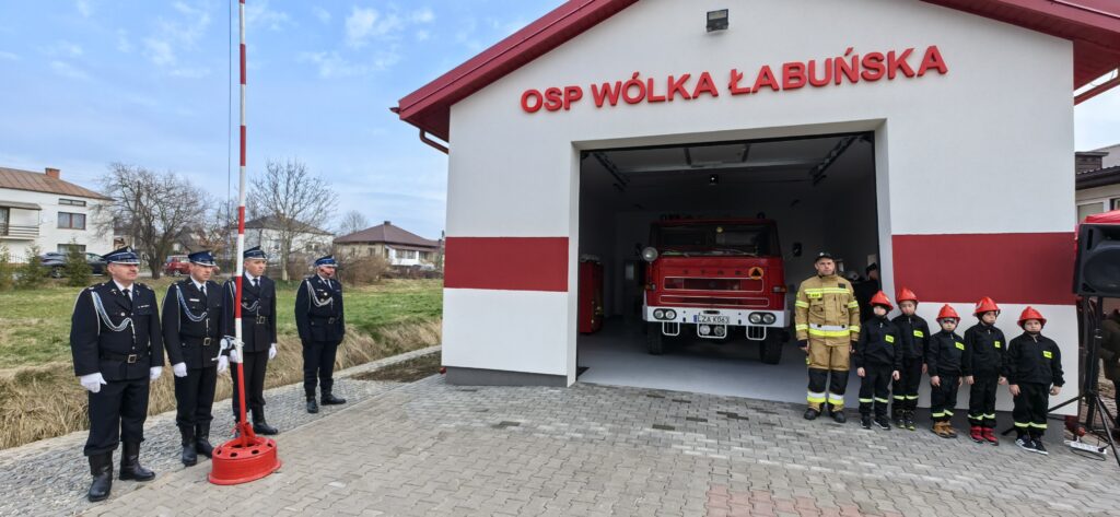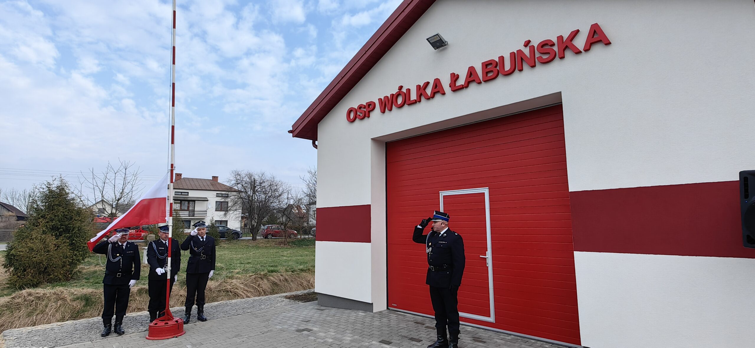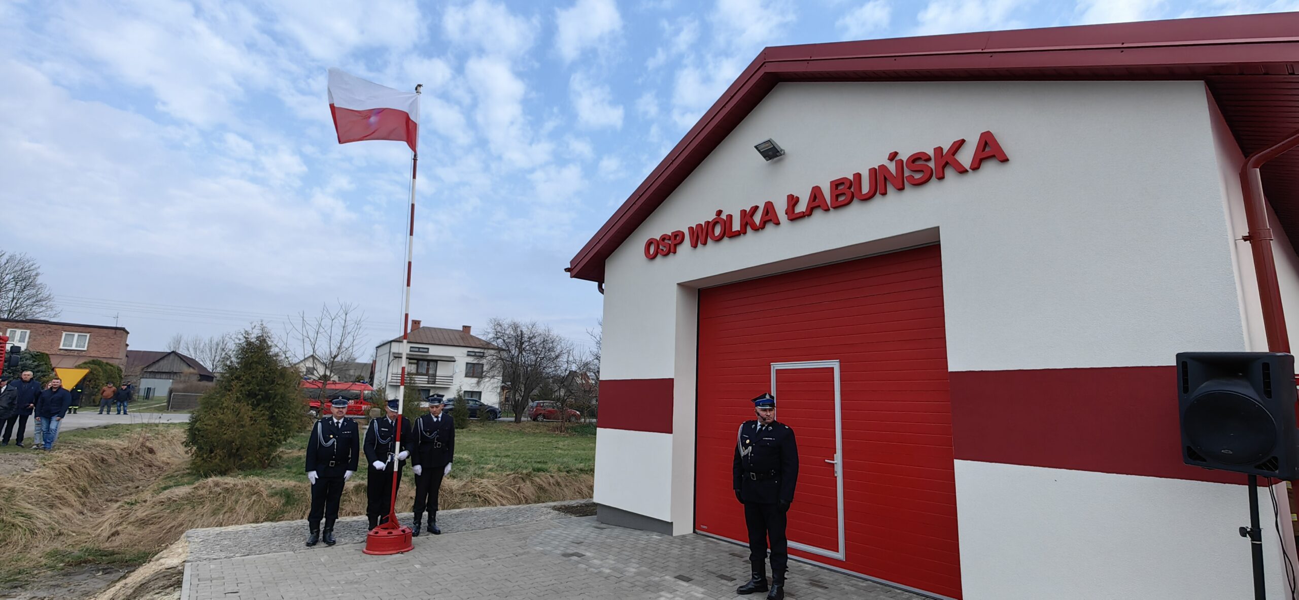 Uroczystość otworzył Wójt Gminy Łabunie – Mariusz Kukiełka, który powitał zaproszonych gości. Następnie nowy obiekt został poświęcony przez proboszcza łabuńskiej parafii – ks. Andrzeja Łuszcza. Było również symboliczne przecięcie wstęgi przez: Wójta Gminy Łabunie – Mariusza Kukiełkę, Radnego Sejmiku Województwa Lubelskiego – Krzysztofa Gałaszkiewicza, Przewodniczącą Rady Gminy Łabunie – Elżbietę Kuźmę, V-ce Przewodniczącego Rady Powiatu Zamojskiego – Antoniego Skurę, Komendanta Miejskiego Państwowej Straży Pożarnej w Zamościu – mł. bryg. Przemysława Ilczuka, Wiceprezesa Oddziału Powiatowego ZOSP RP w Zamościu – st. bryg. Jacka Sobczyńskiego, Prezesa Zarządu Gminnego ZOSP RP w Łabuniach – Mariusza Braneckiego, Prezesa OSP w Wólce Łabuńskiej – dh Zbigniewa Żuka, Sołtysa Wólki Łabuńskiej – Piotra Głazowskiego oraz Proboszcza Parafii Rzymskokatolickiej pw. M. Bożej Szkaplerznej i Św. Dominika w Łabuniach – ks. Andrzeja Łuszcza.