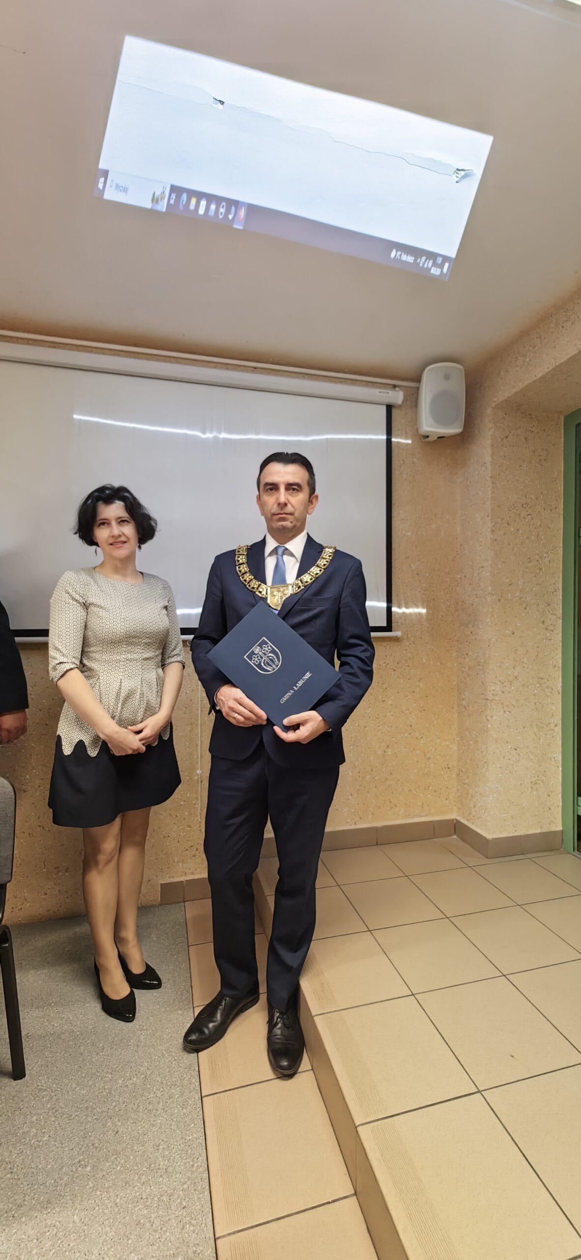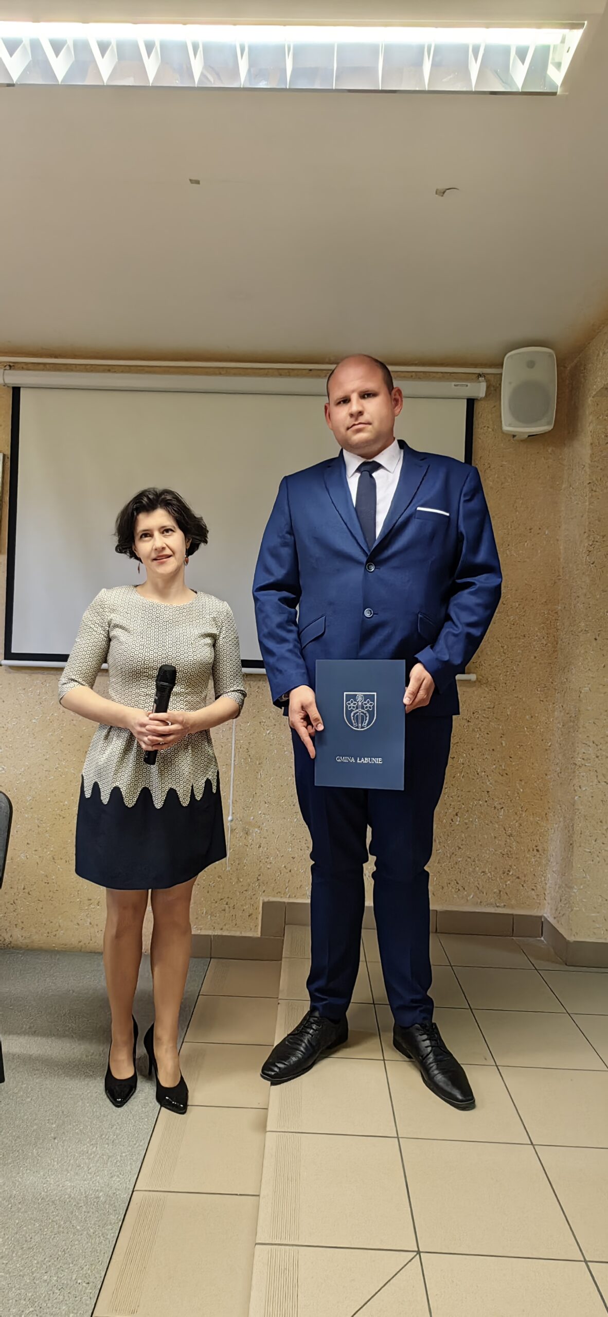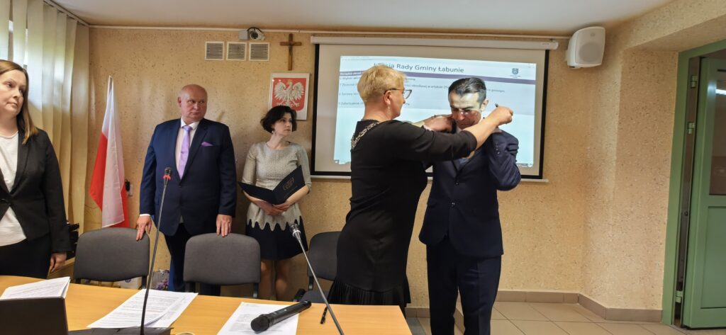Sesję otworzył najstarszy wiekiem Radny Kazimierz Szala. Po odśpiewaniu hymnu państwowego radni odebrali od Przewodniczącej Gminnej Komisji Wyborczej w Łabuniach – Agnieszki Szykuły-Żygawskiej zaświadczenia o wyborze radnego. Potem złożyli ślubowanie.