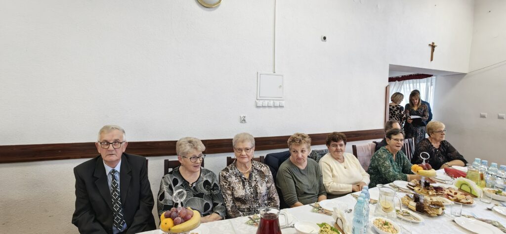 Świętującym Seniorom życzenia złożyli: Wójt Gminy Łabunie-Mariusz Kukiełka oraz Prezes Stowarzyszenia-Halina Piskorz i Radny Wiesław Zimerman. Był też tort dla Seniorów ufundowany przez Wójta Mariusza Kukiełkę i odśpiewane Seniorom głośne „Sto lat”.
