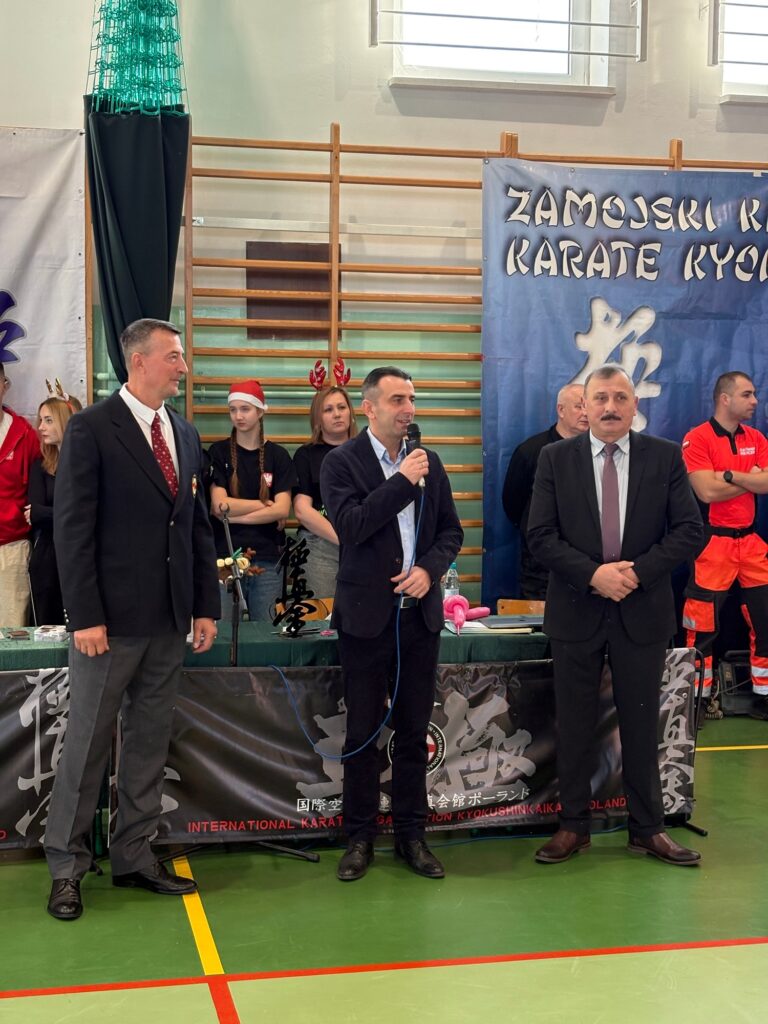 Zwycięzcom puchary wręczali Pan Mariusz Kukiełka Wójt Gminy Łabunie, Pan Antoni Skura Przewodniczący Rady Powiatu Zamojskiego i Shihan Krzysztof Policha.